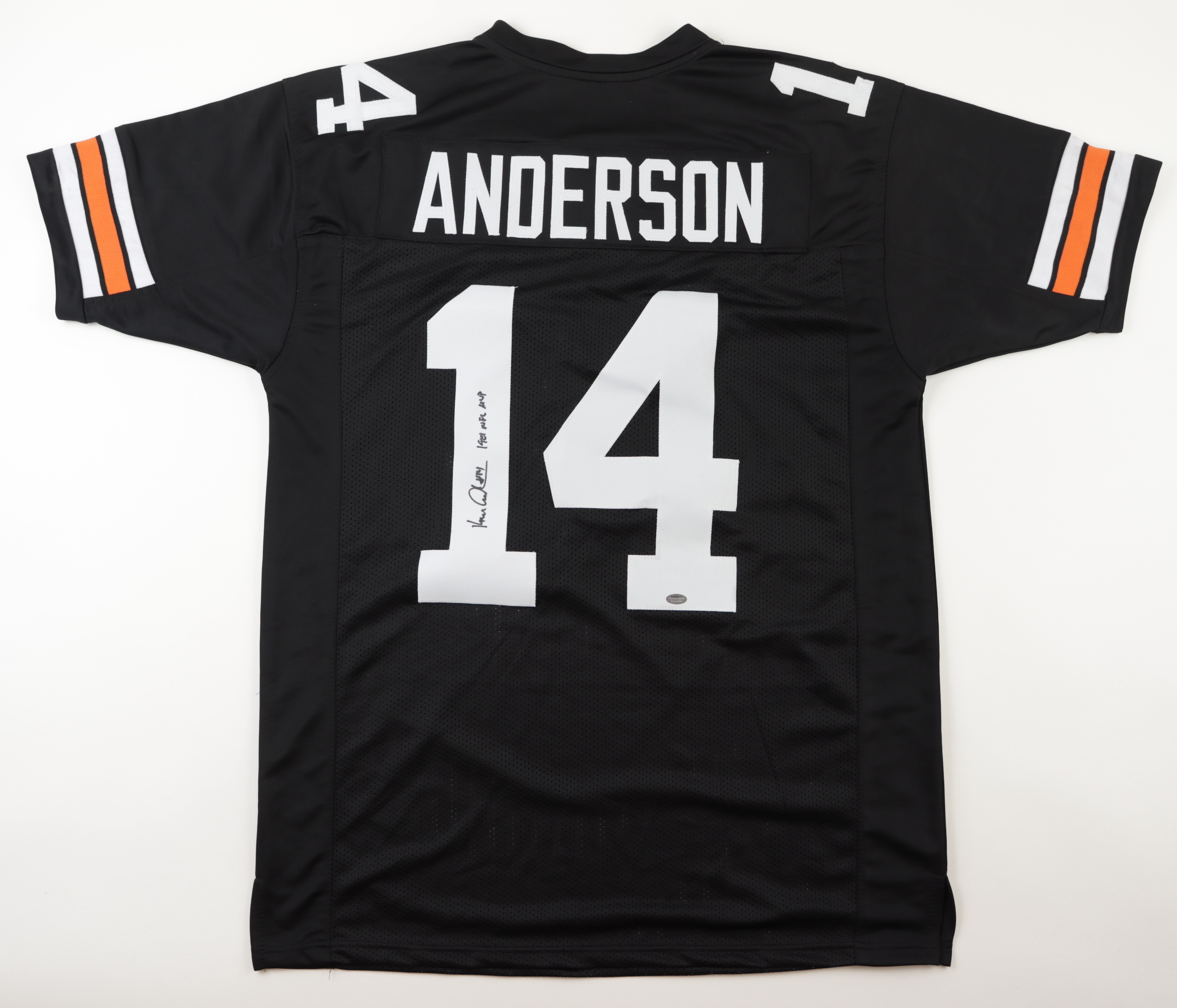 Custom on-field style jersey. Everything is sewn on, size XL. Hand-signed by Ken Anderson.