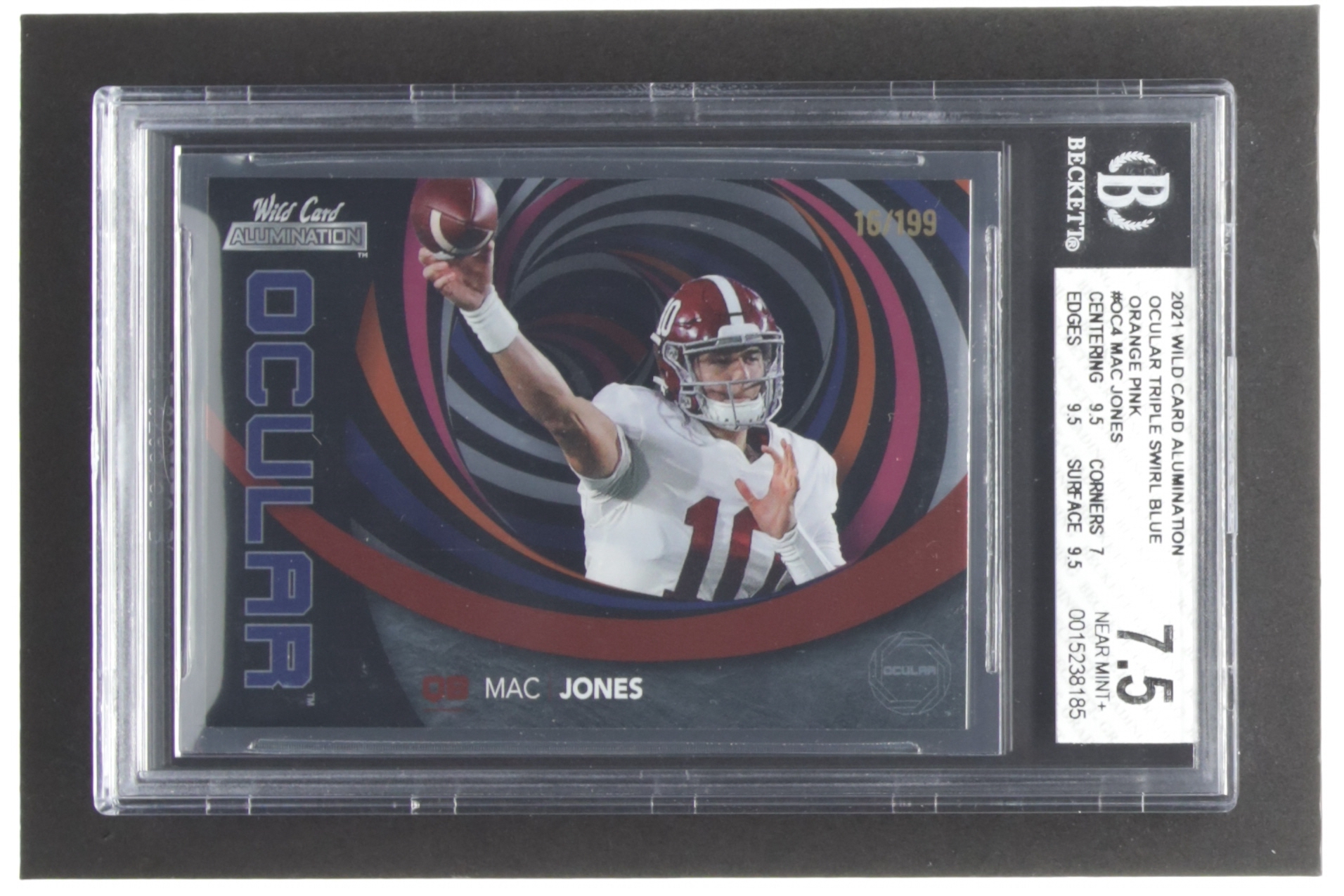 Mac Jones 2021 Wild Card Alumination Ocular Triple Swirl Blue Orange Pink #OC4 #16/199 RC (BGS 7.5)