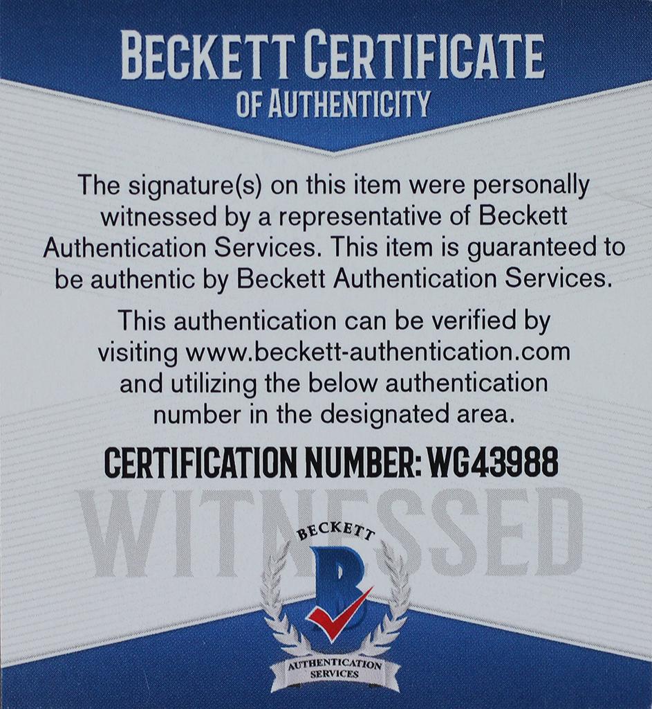 The autograph includes an official Beckett Authentication Services serially-numbered hologram and matching COA for authenticity purposes.