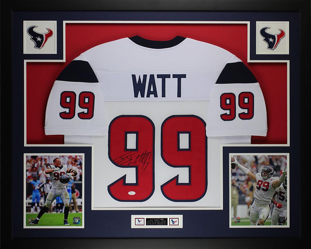 Custom frame measures 35" x 43" in size and features a jersey hand-signed by JJ Watt (Houston Texans).