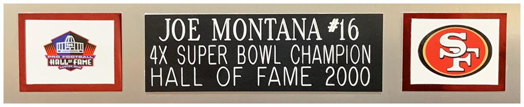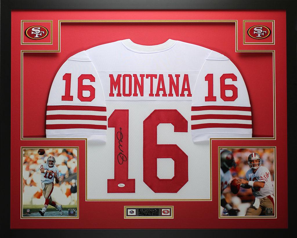 Custom frame measures 35" x 43" in size and features a jersey hand-signed by Joe Montana (HOF).