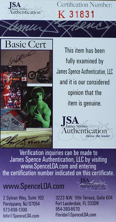 The autograph includes an official James Spence Authentication (JSA) hologram and matching COA for authenticity purposes.