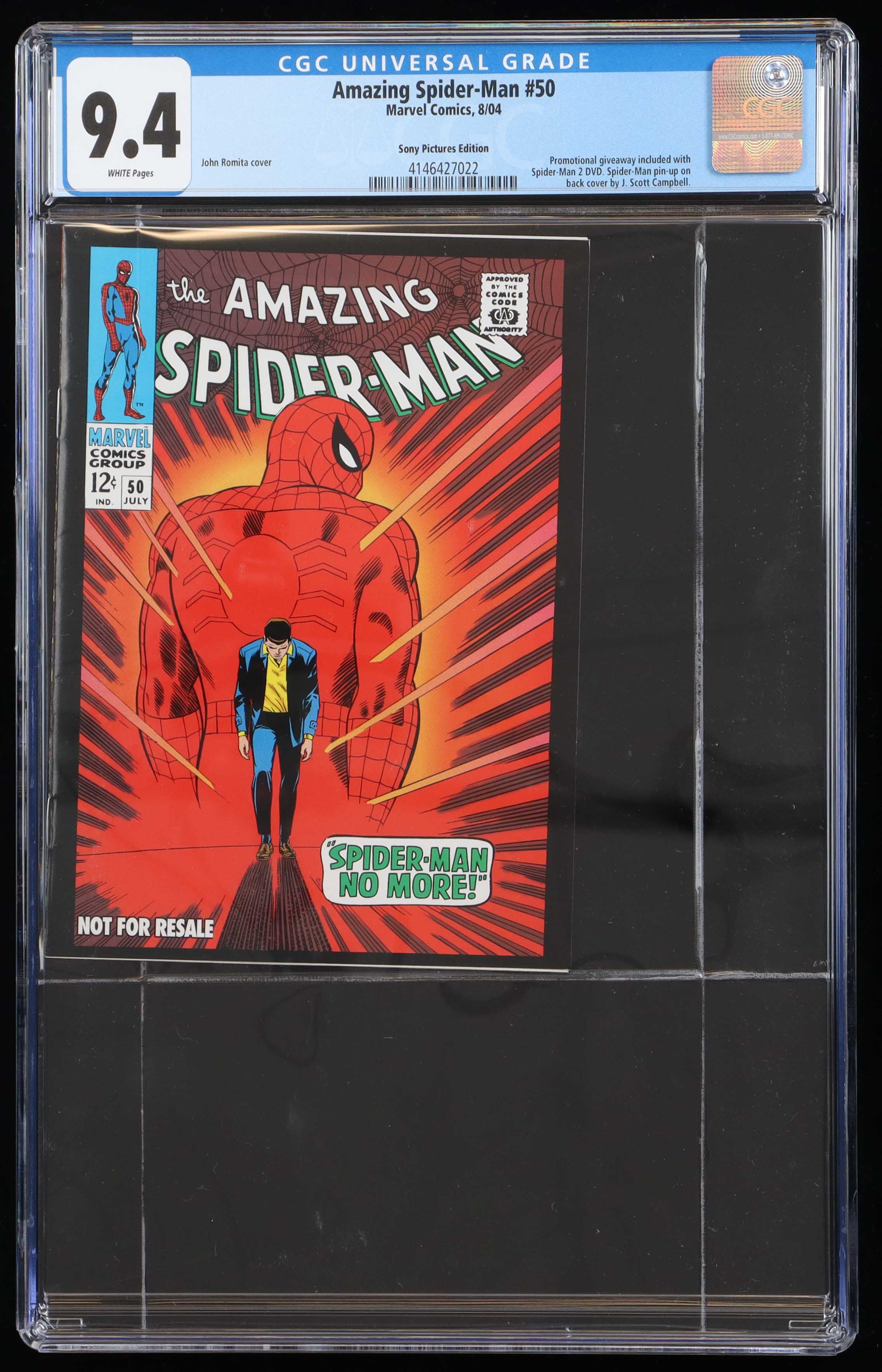 December 2003 "The Amazing Spider-Man" Issue #50 Marvel Comic Book has been graded CGC 9.4. Please see photos for details regarding the condition of the comic book.