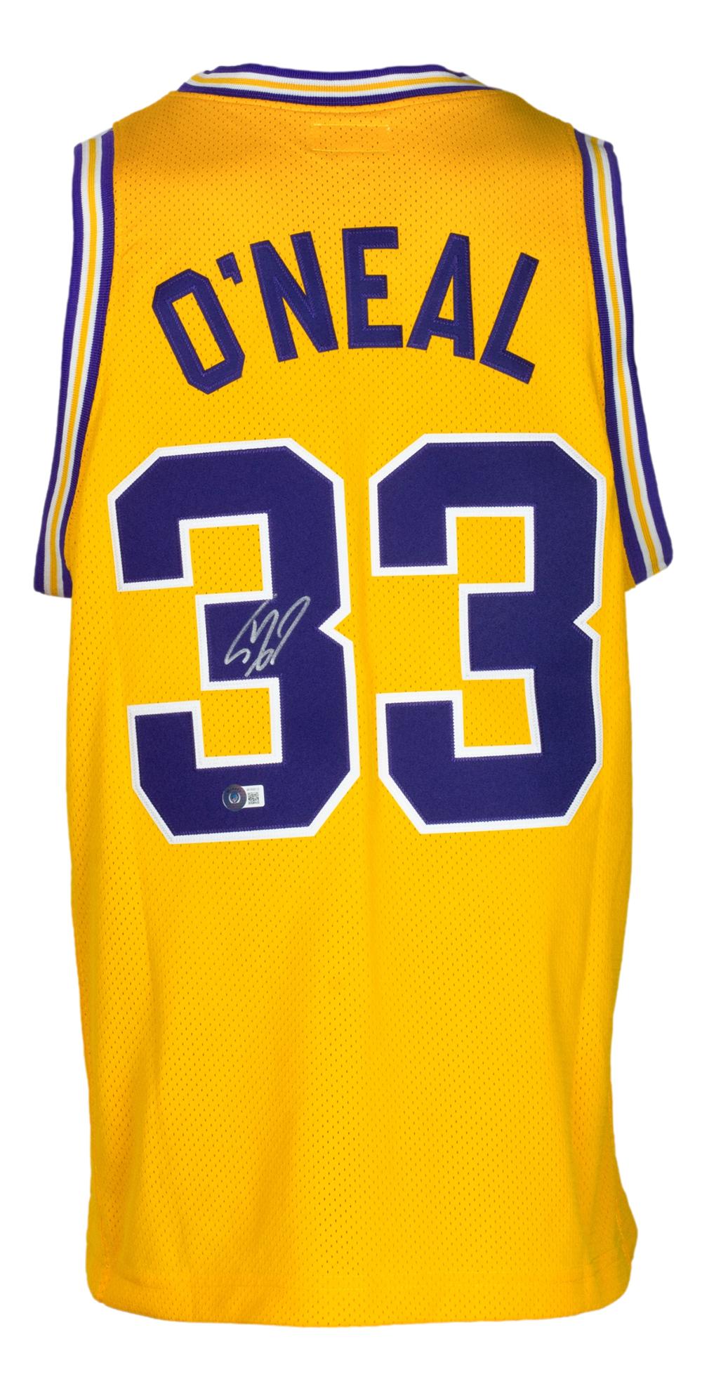 Custom on-court style jersey. Everything is sewn on, size XL. Hand-signed by Shaquille O'Neal.