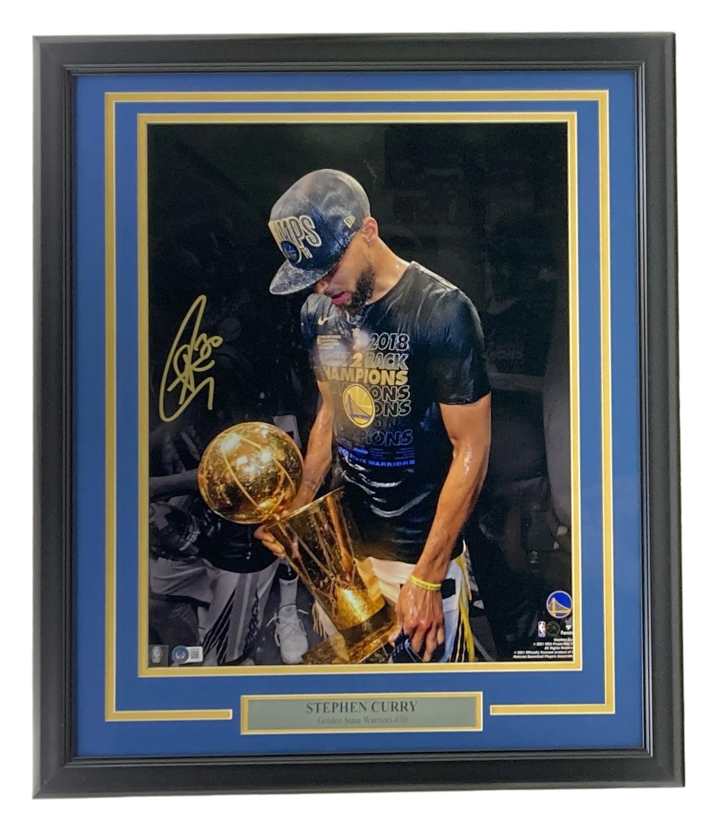 Custom frame measures 22" x 27" in size and features a photo that has been hand-signed by Stephen Curry (Golden State Warriors).
