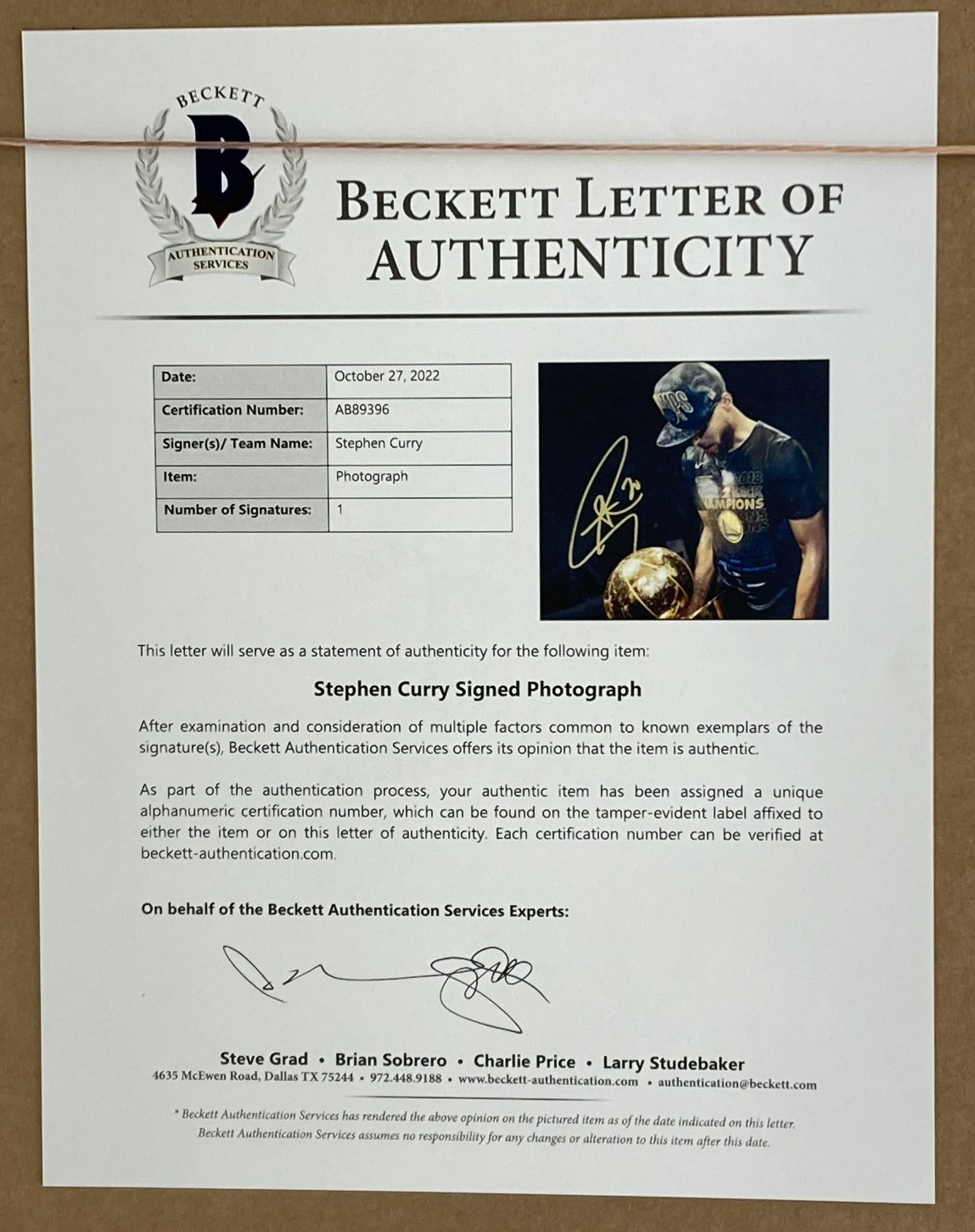 The autograph includes an official Beckett Authentication Services hologram and matching LOA for authenticity purposes.