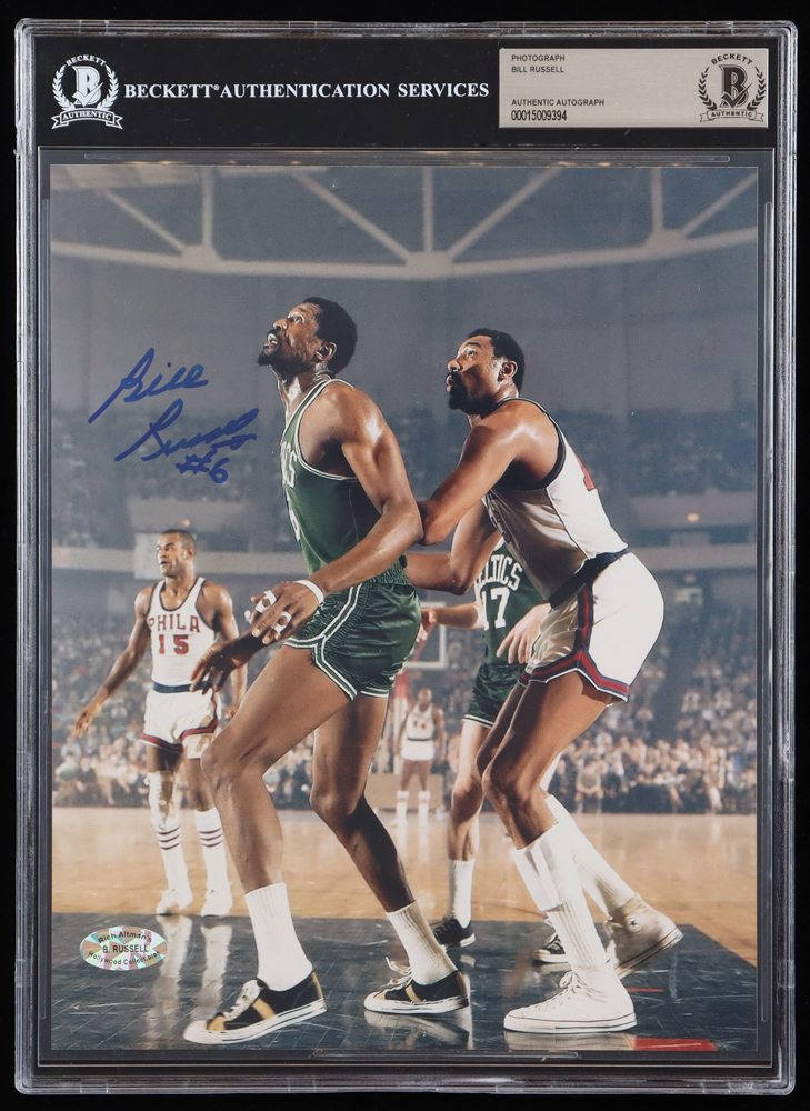 Bill Russell Signed Celtics 8x10 Photo vs. Wilt Chamberlain Inscribed "#6" (Beckett Encapsulated)