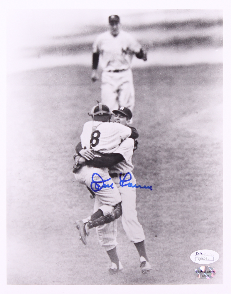 Photo measures 8" x 10" in size and has been hand-signed in blue felt-tip pen by Don Larson (Yankees).