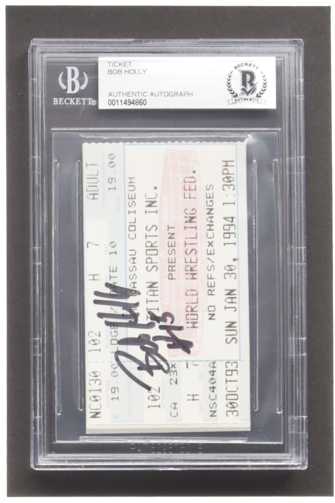 Bob Holly Signed 1994 WWF Ticket Stub (BGS)