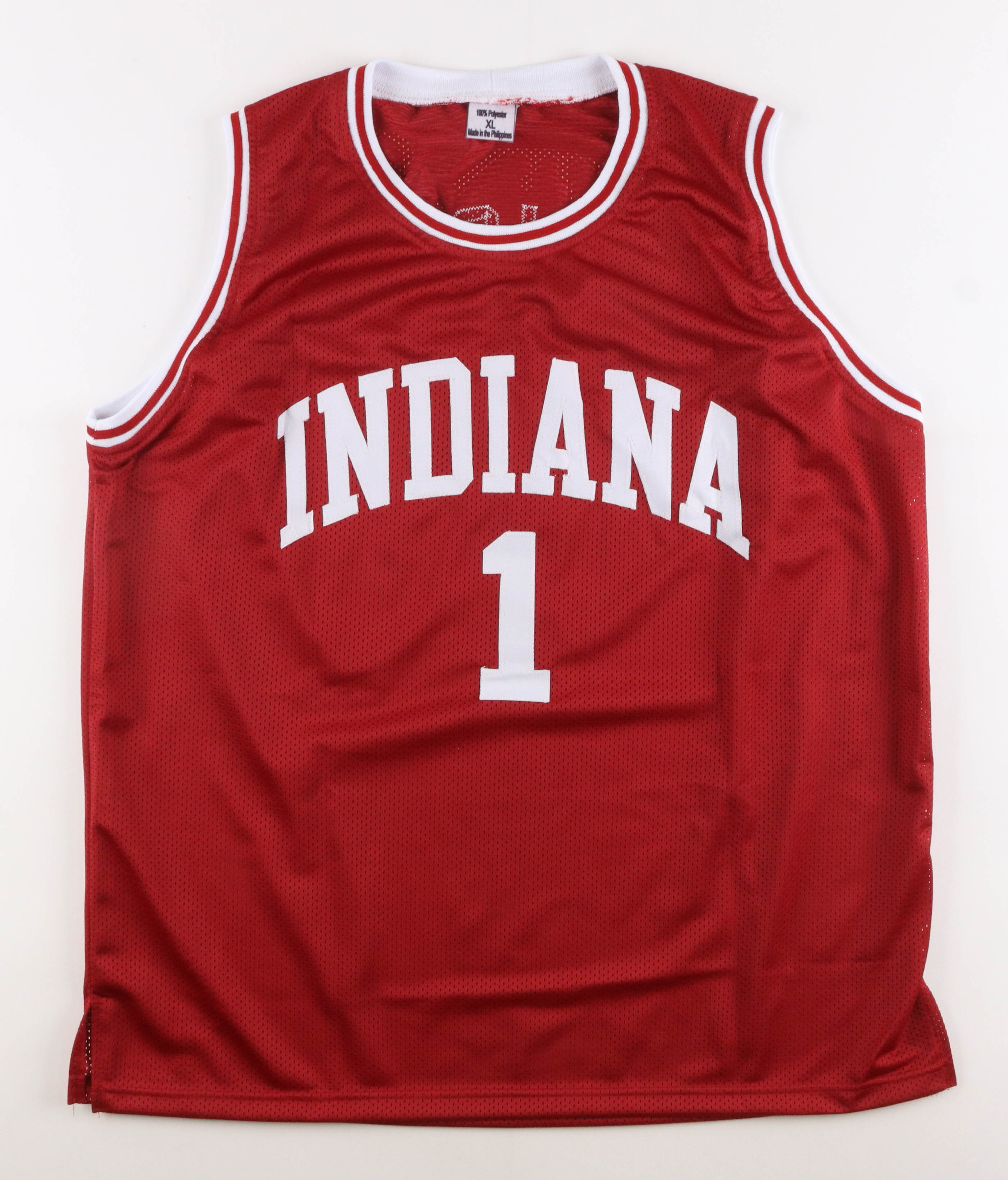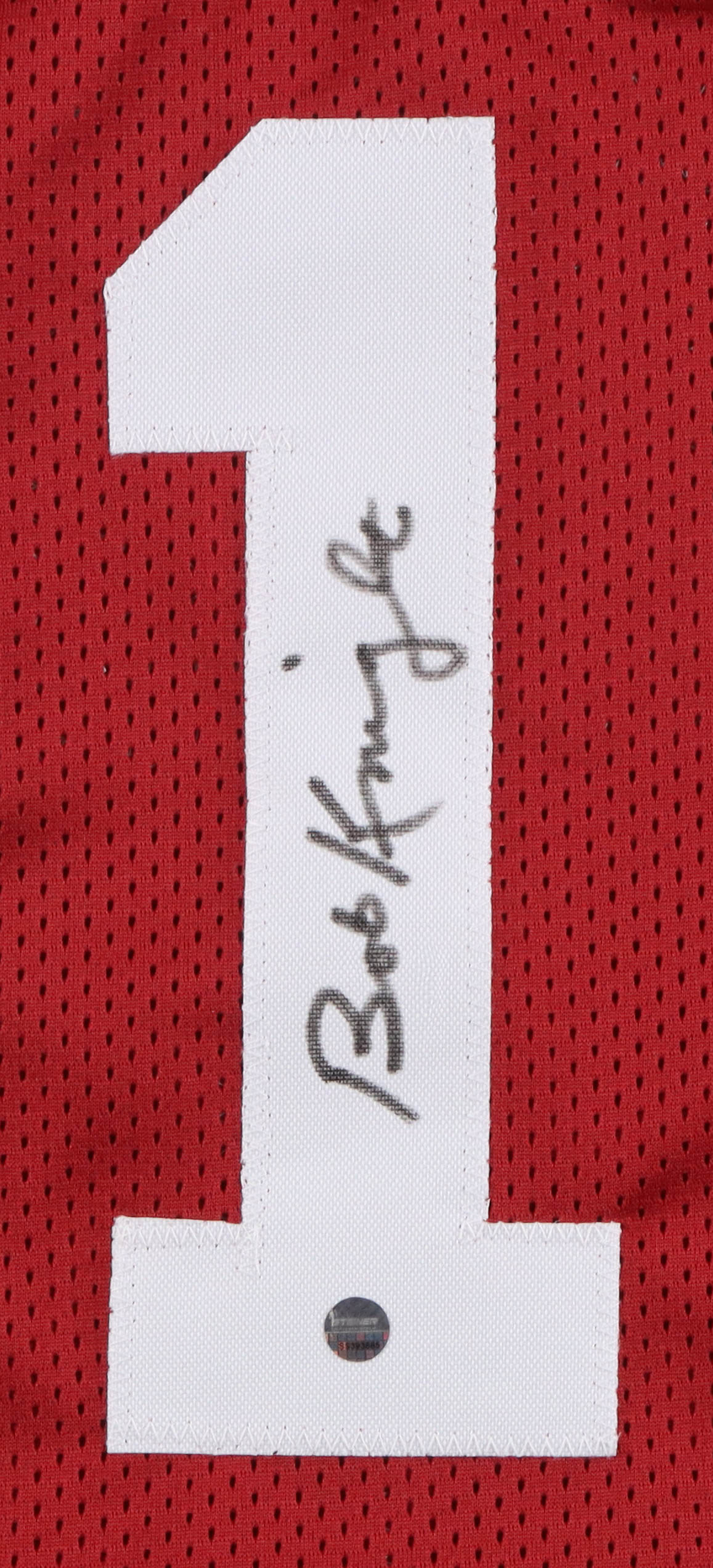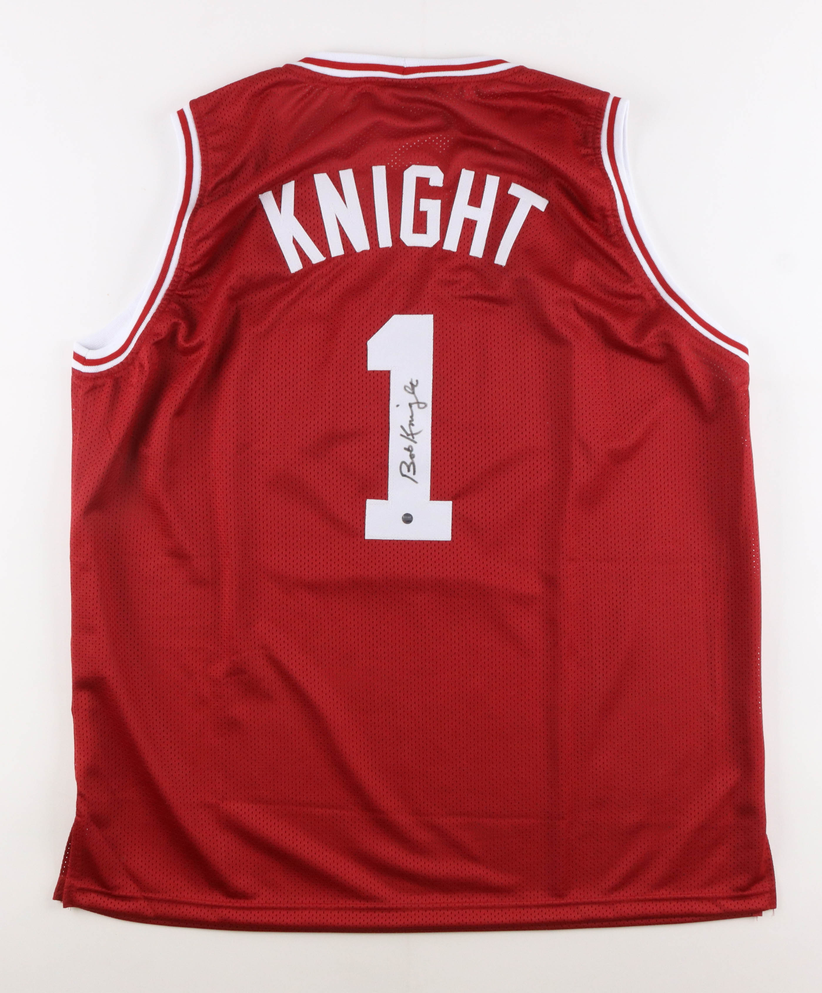 Custom on-court style jersey. Everything is sewn on, size XL. Hand-signed by Bob Knight (HOF).