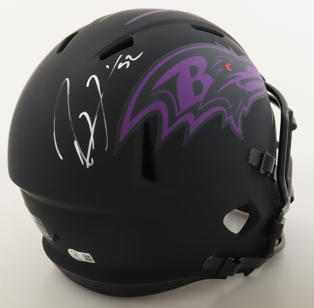 Riddell Baltimore Ravens full-size replica Eclipse Alternate Speed helmet. Hand-signed by Ray Lewis (HOF).
