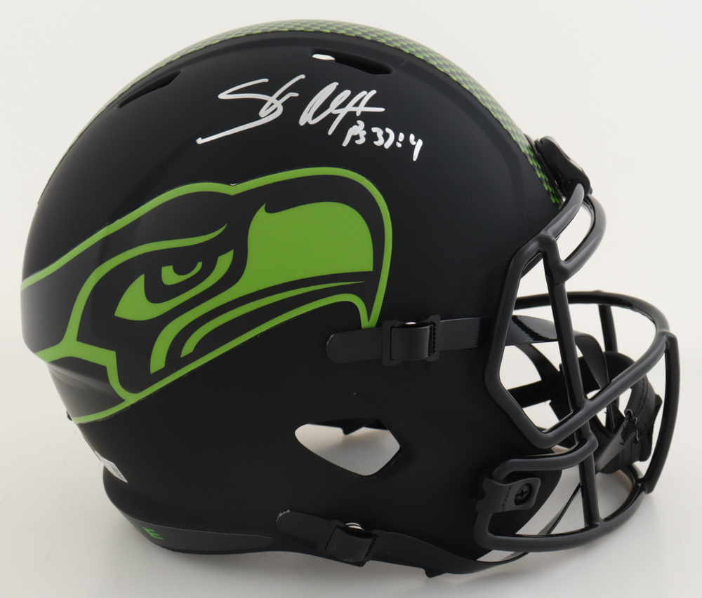 Riddell Seattle Seahawks full-size replica Eclipse Alternate Speed helmet. Hand-signed by Shaun Alexander.
