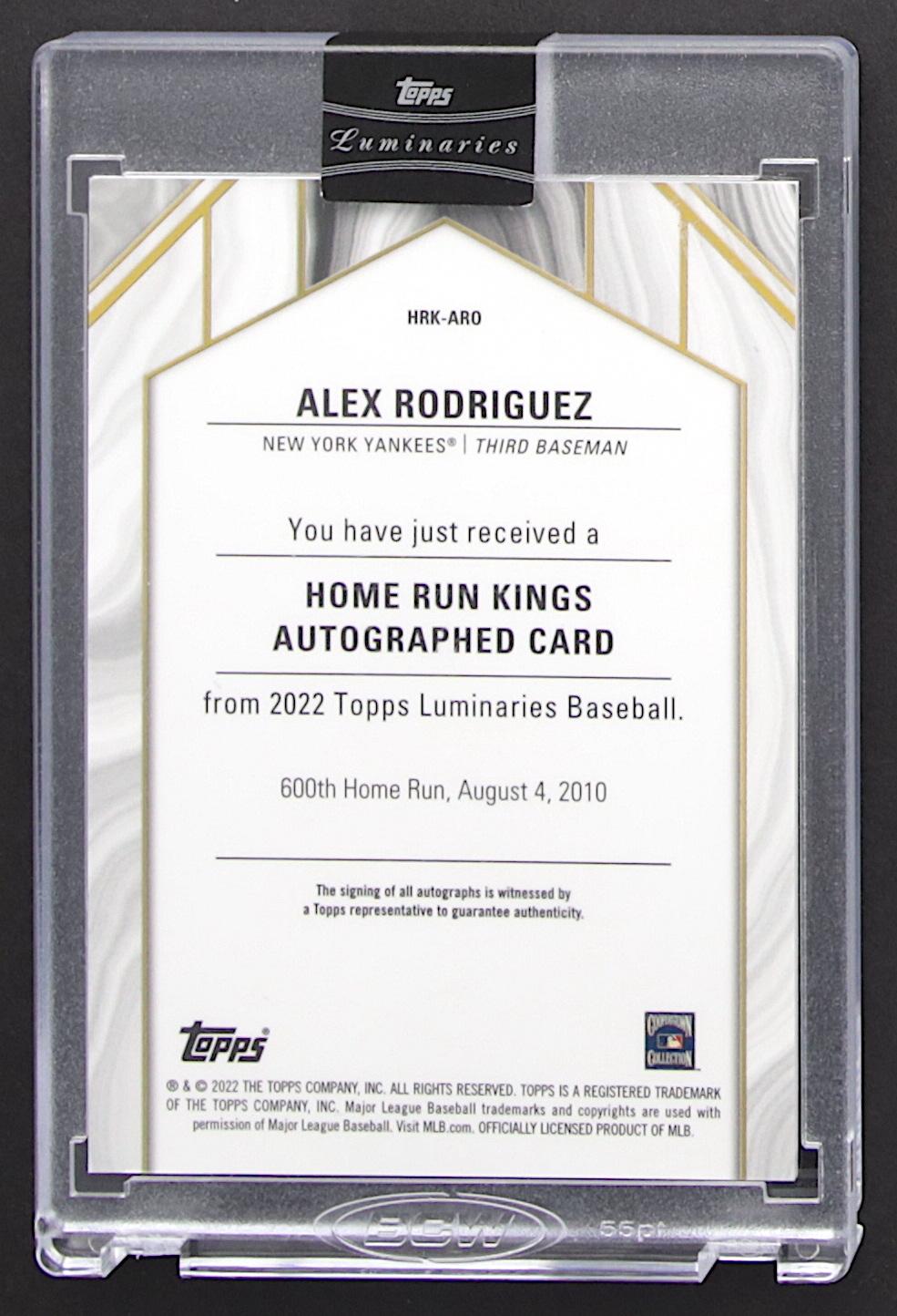 Alex Rodriguez 2022 Topps Luminaries Home Run Kings Autographs Red #HRKARO #2/10