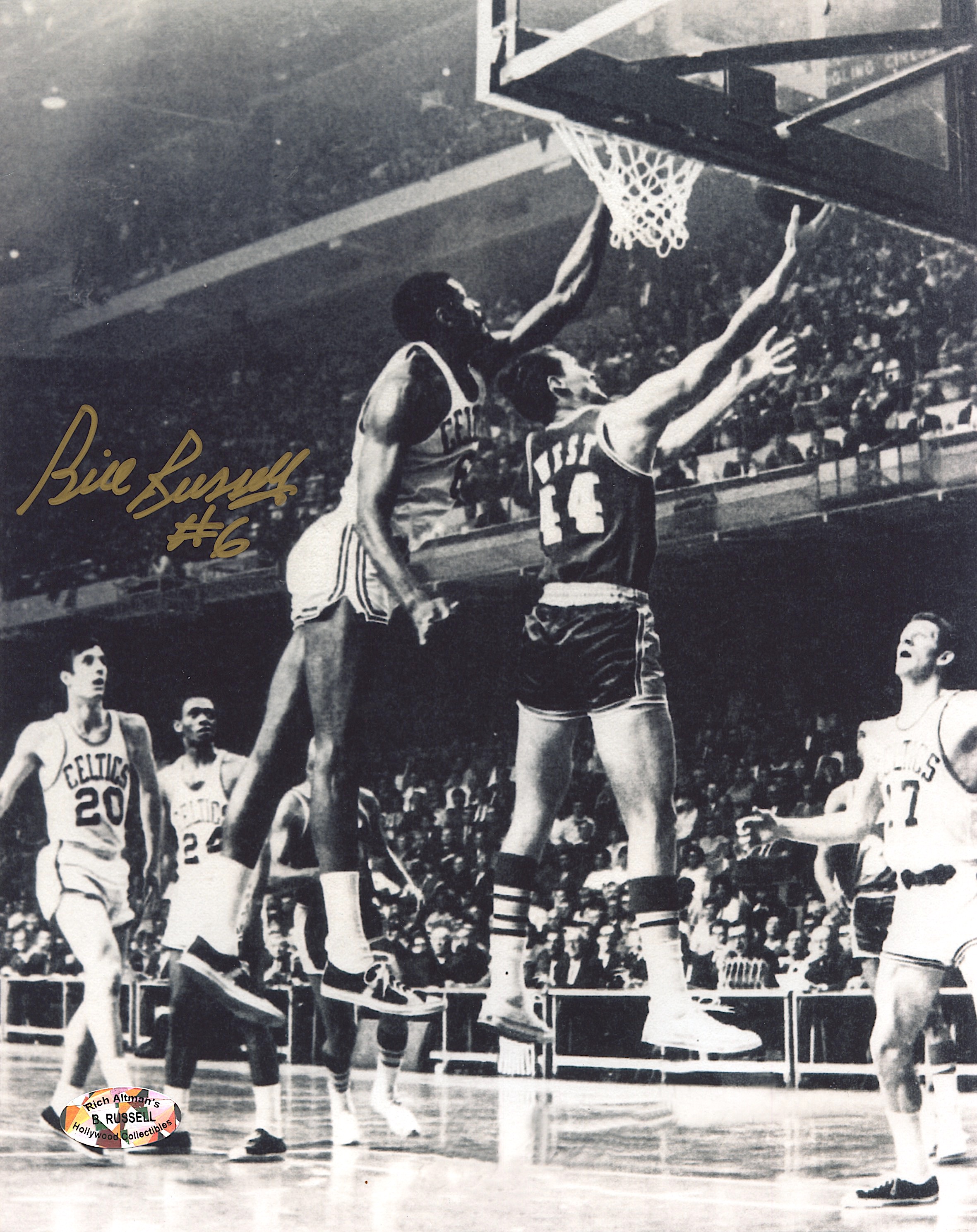 The autograph includes an official Bill Russell player hologram from Rich Altman's Hollywood Collectibles for authenticity purposes.