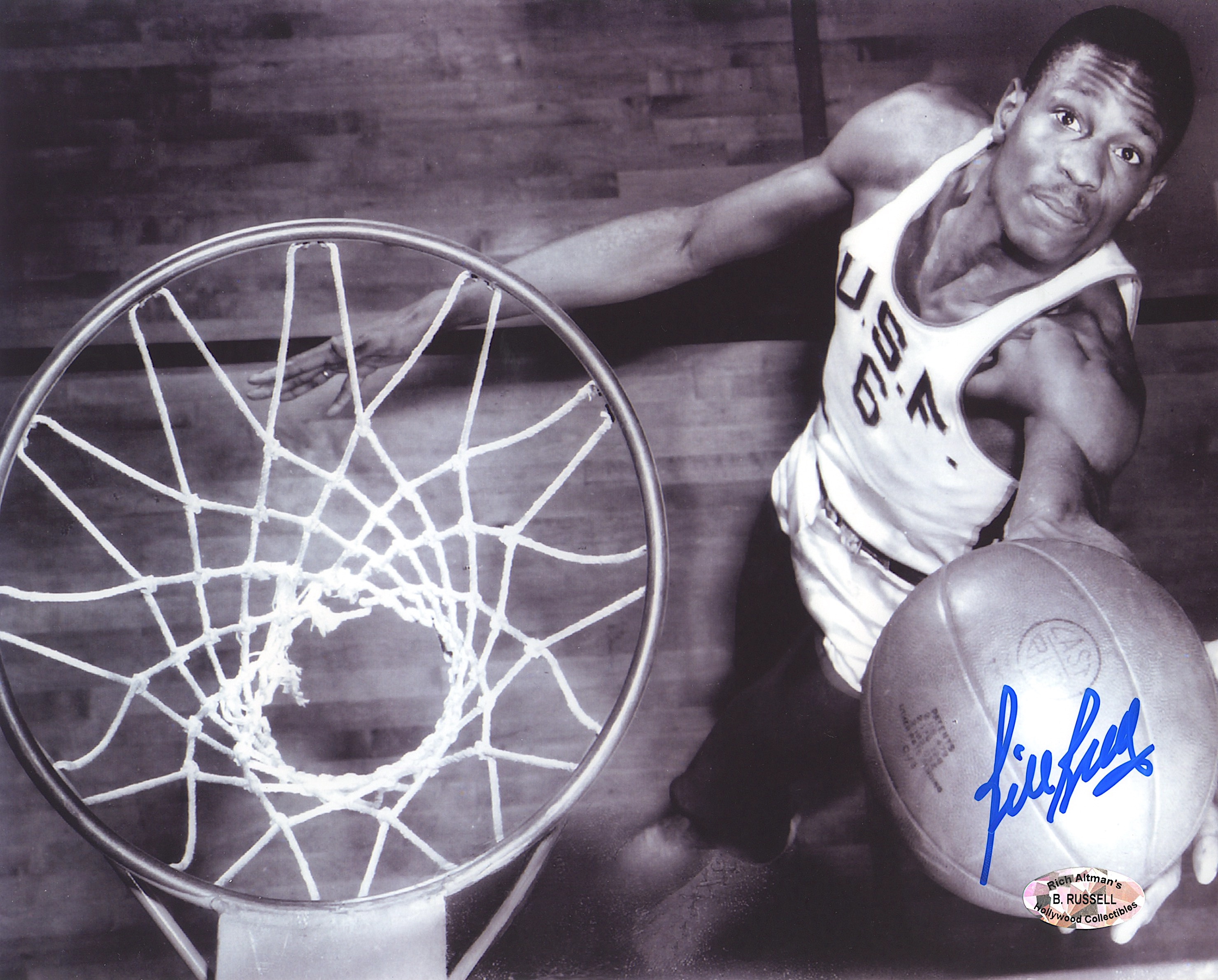 Photo measures 8" x 10" in size and is hand-signed by Bill Russell (D. 2022).