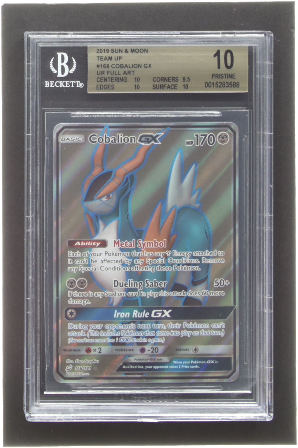 Cobalion GX 2019 Pokemon Sun and Moon Team Up #168 UR FULL ART (BGS 10)