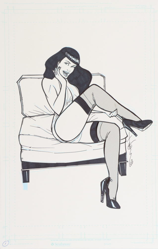 Tom Hodges - "Bettie Page" Trading Card Art 1 - Signed 11x17 ORIGINAL Artwork (PA COA)