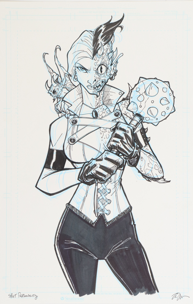 This original piece is one-of-a-kind and measures approximately 11" x 17" in size. The piece is hand-signed by renowned comic book artist, Tom Hodges.