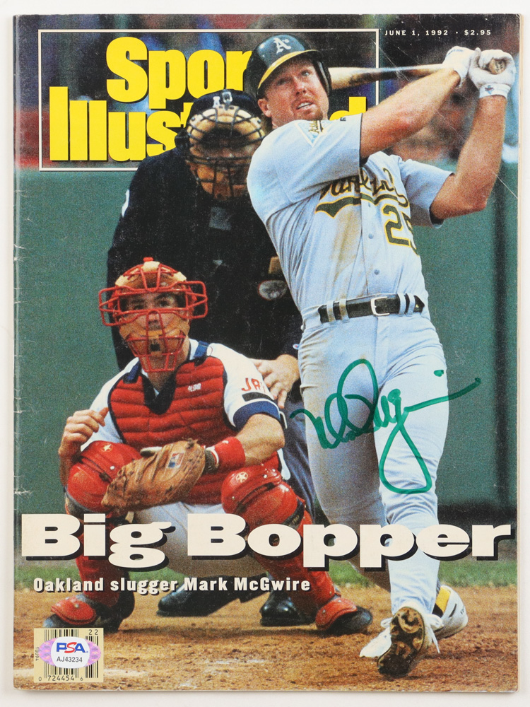 June 1, 1992 issue of Sports Illustrated magazine. Hand-signed on the cover by Mark McGwire (St. Louis Cardinals). Please note, there is creasing on the cover of the magazine.