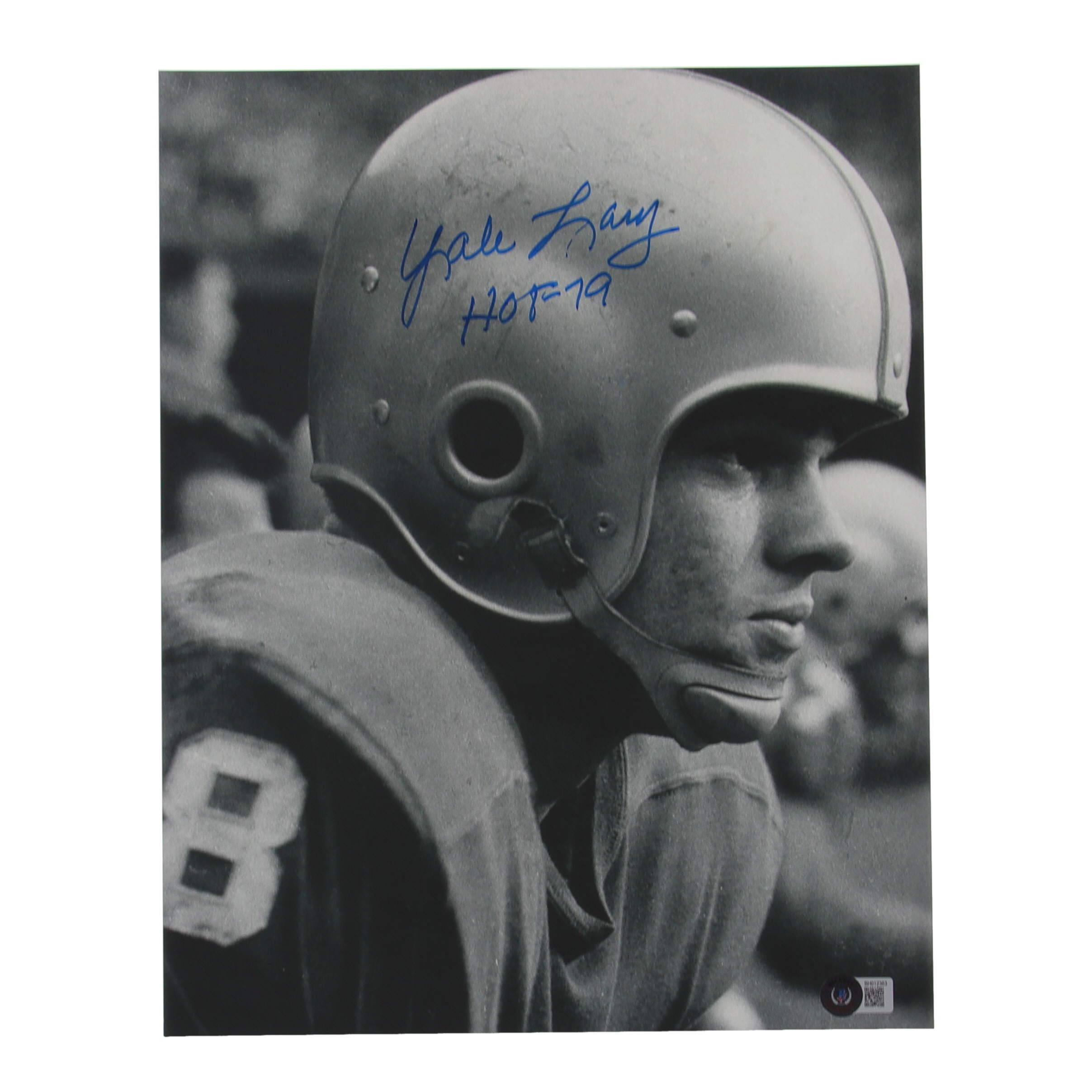 Photo measures 11" x 14" in size and has been hand-signed and inscribed by Yale Lary (D. 2017, Detroit Lions, HOF).