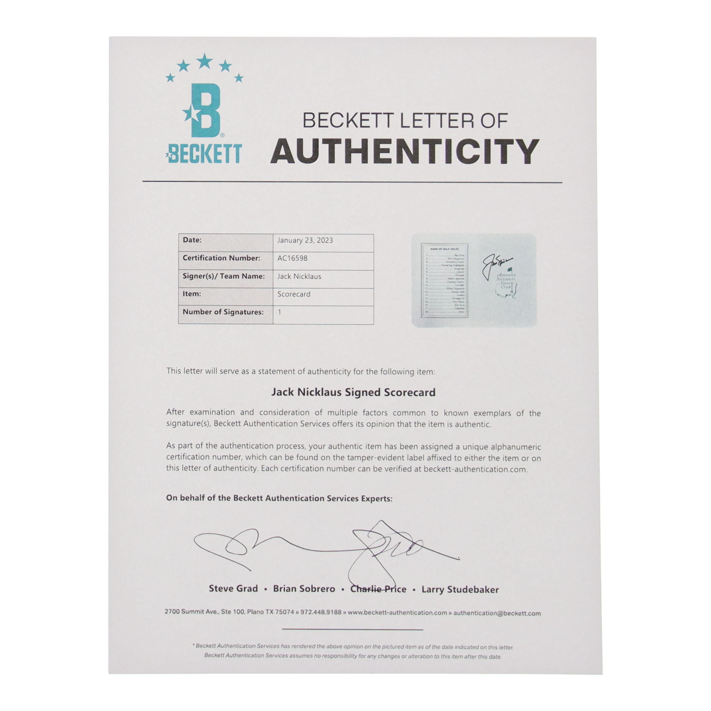 Jack Nicklaus Signed Augusta National Golf Club Score Card (Beckett)