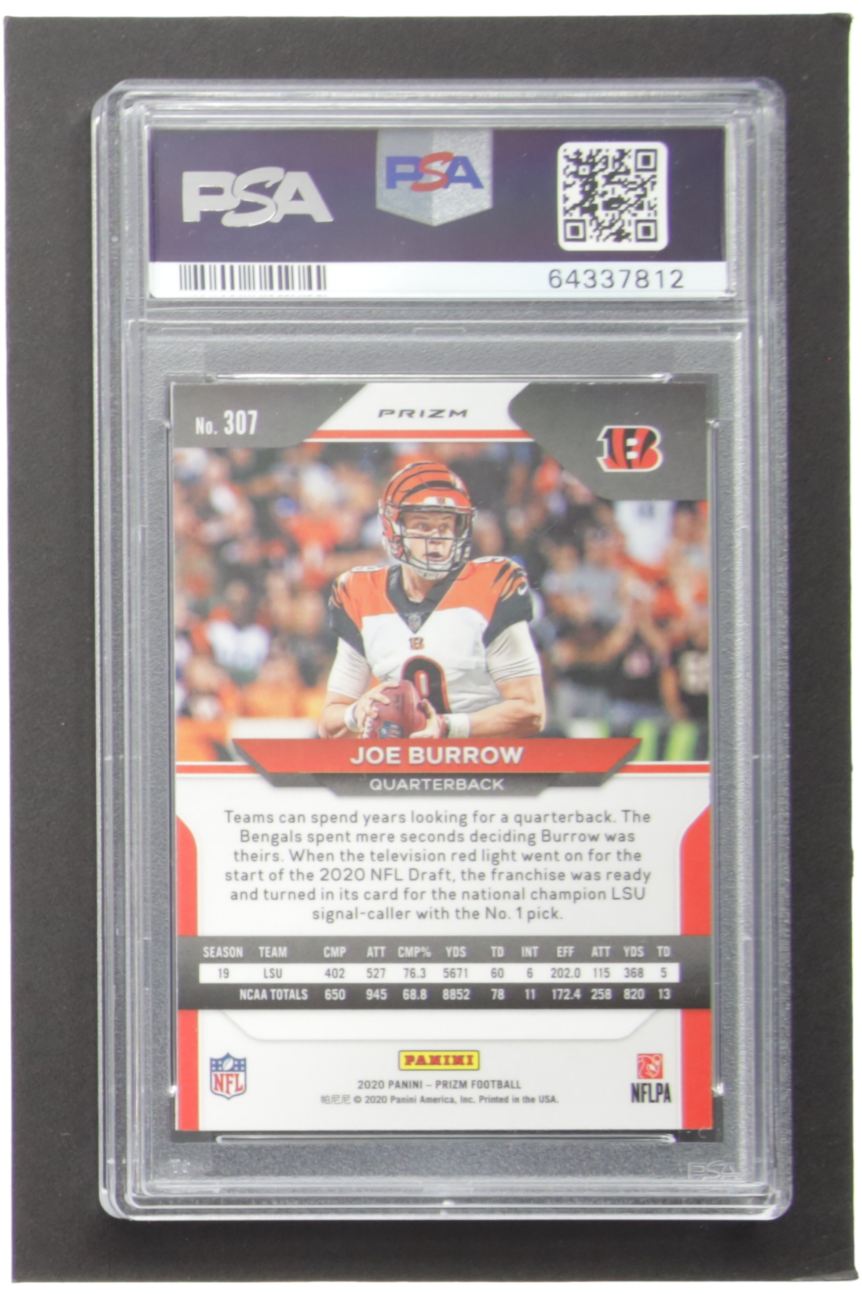 Joe Burrow 2020 Panini Prizm Prizms Orange Lazer #307 (PSA 9)