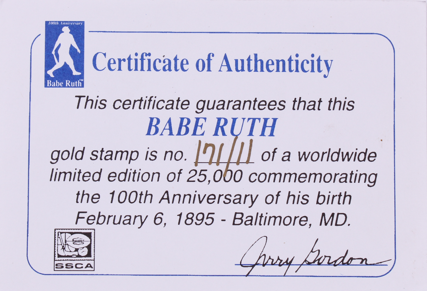 Babe Ruth Commemorative "100th Anniversary" 23 Karat Gold Stamp
