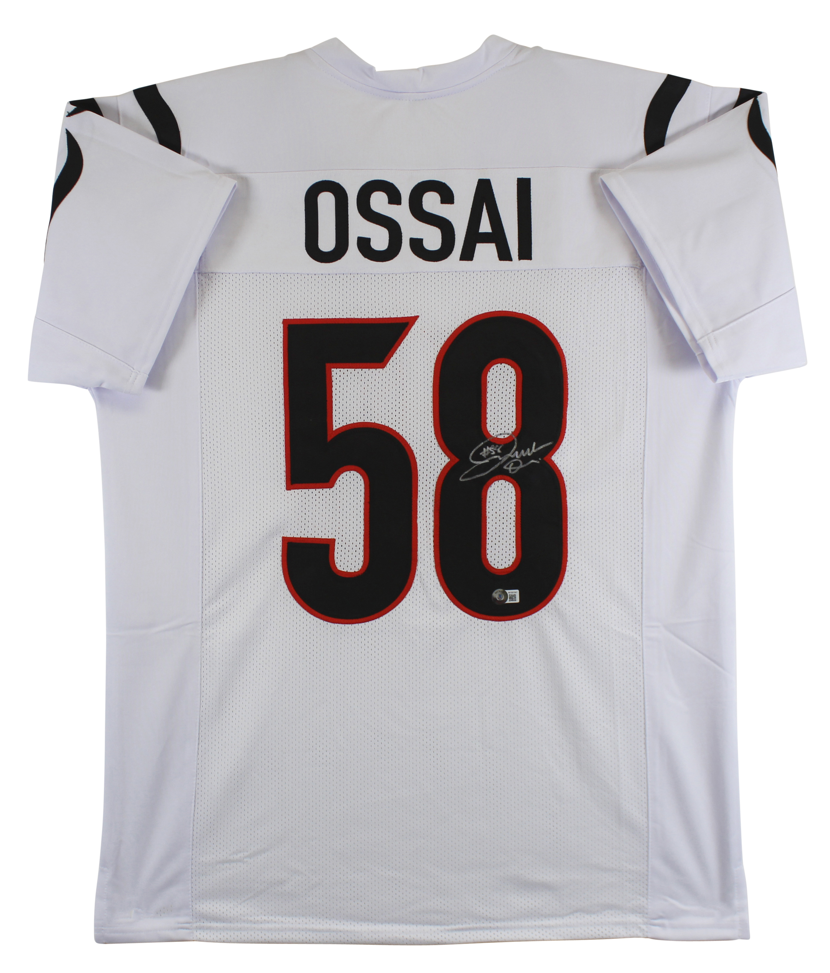 Custom on-field style jersey. Everything is sewn on, size XL. Hand-signed by Joseph Ossai.
