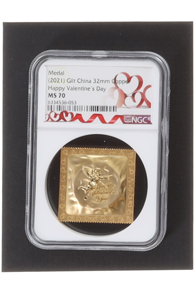 2021 Gilt China Happy Valentine’s Day 32mm Copper Medal - NGC Valentine’s Day Label (NGC MS 70)