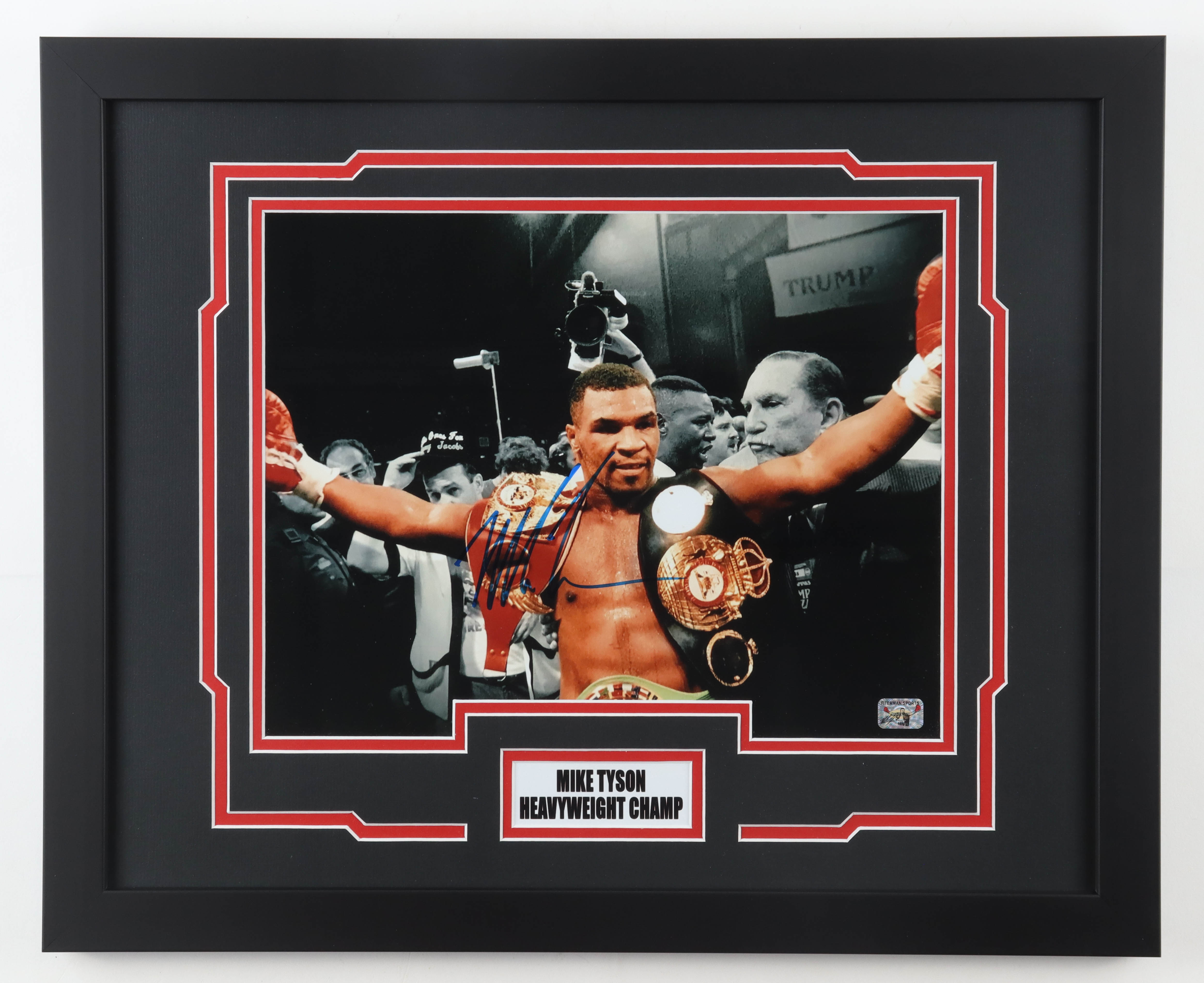 Custom framed display measures approximately 18" x 22" in size and features a photo that has been hand-signed by Mike Tyson (HOF).