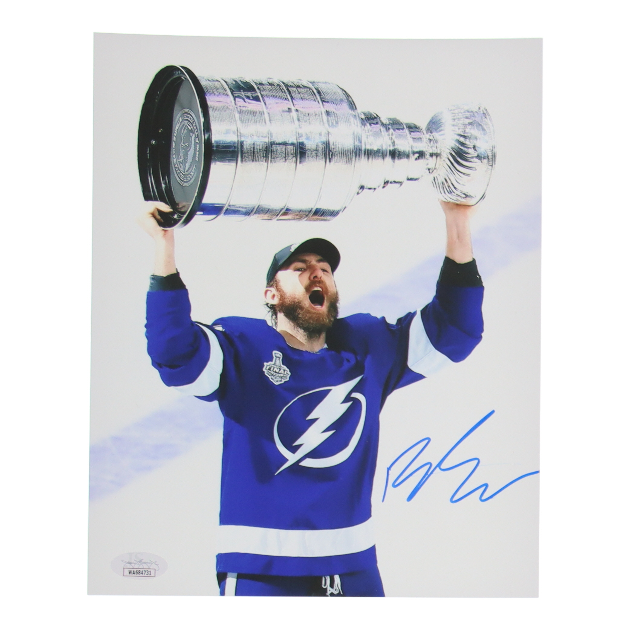 Photo measures 8" x 10" in size and has been hand signed by Barclay Goodrow (Tampa Bay Lightning).
