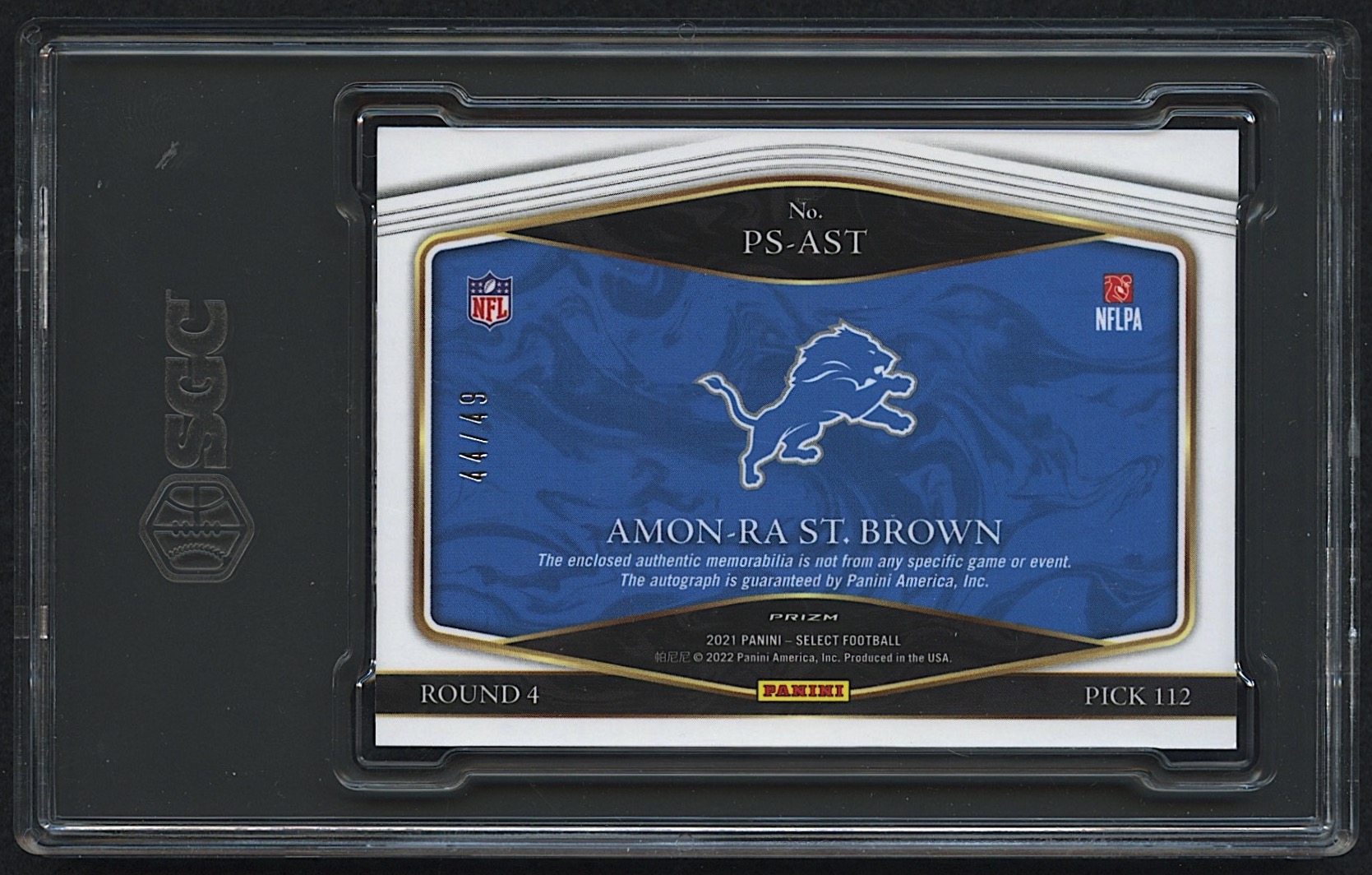 Amon-Ra St. Brown 2021 Select Prime Selections Prizm Signatures #1 RC #44/49 (SGC 9 | Autograph 10)