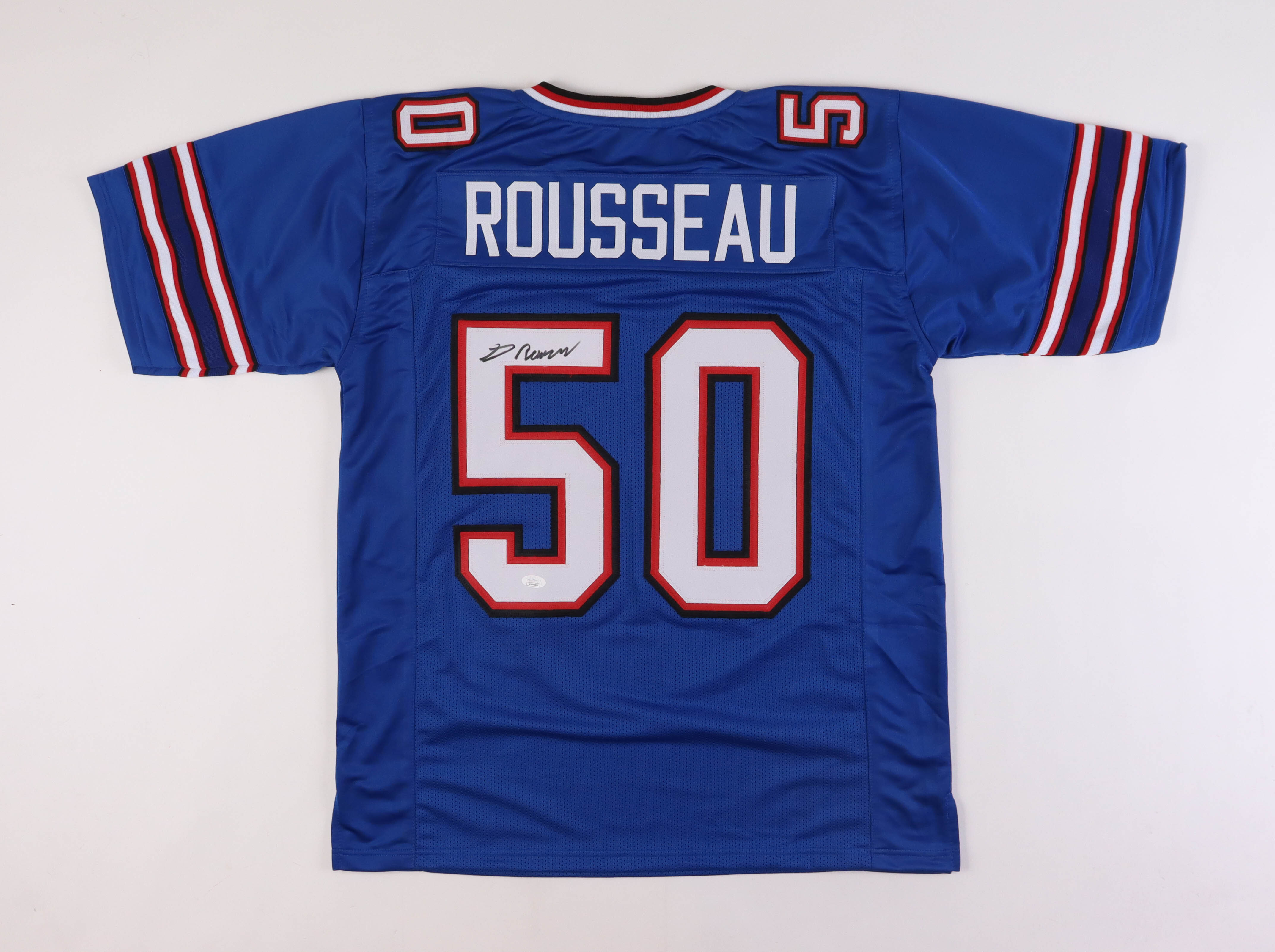 Custom jersey. Everything is sewn on, size XL. Hand-signed by Gregory Rousseau.
