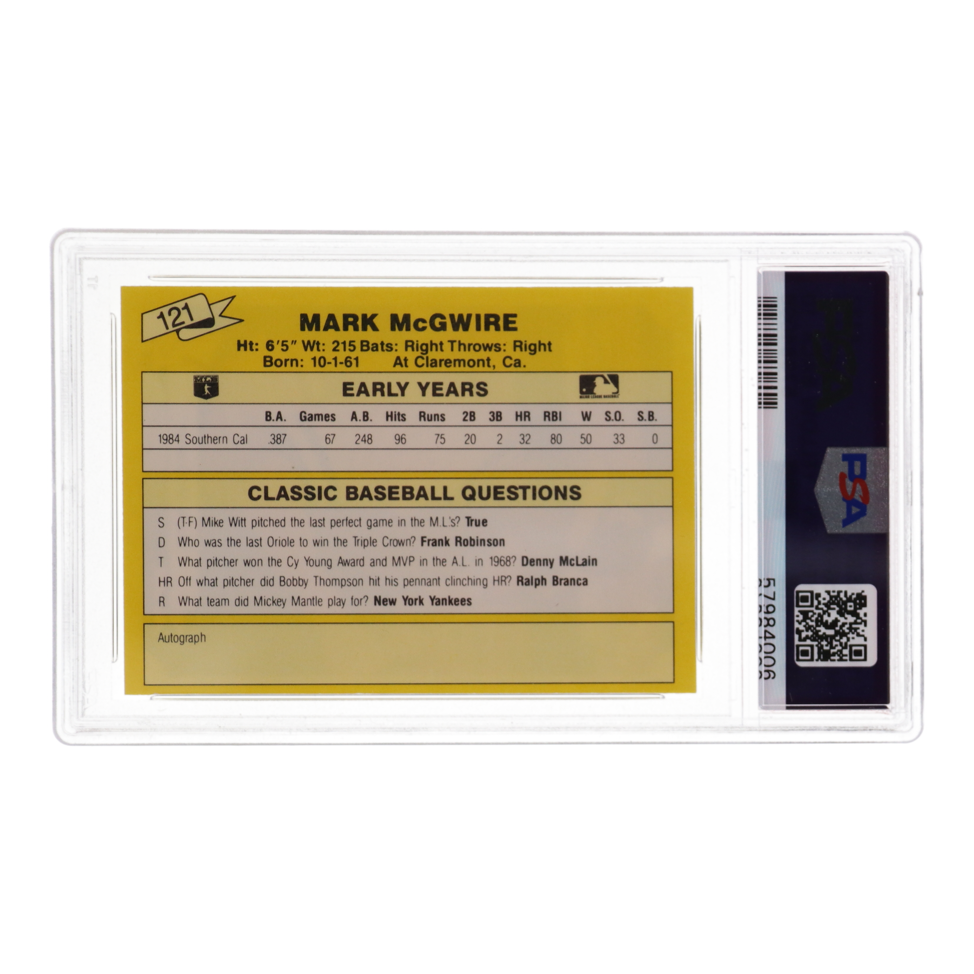 Mark McGwire 1987 Classic Update Yellow #121 (PSA 10)