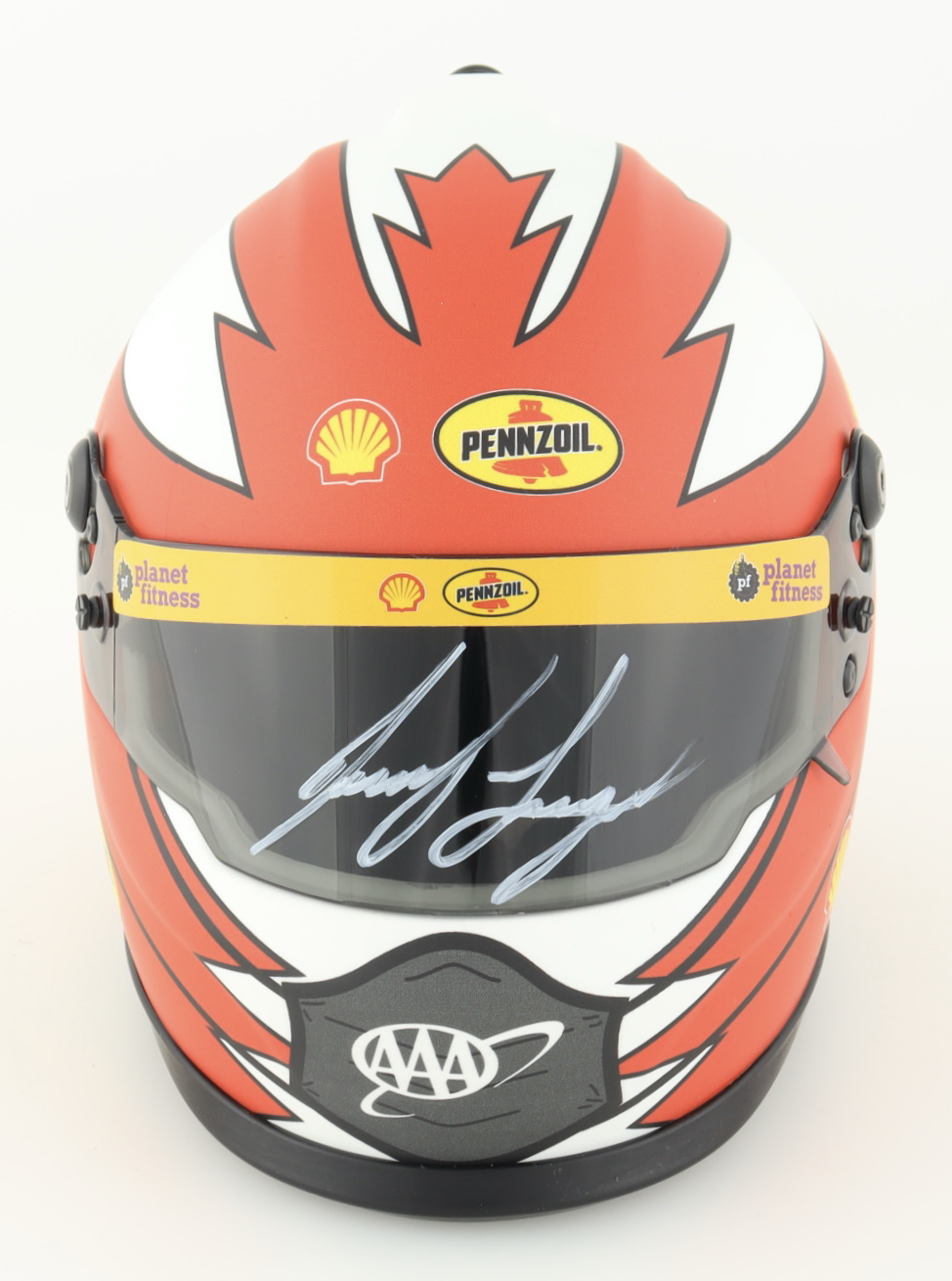 This 1:3 scale mini helmet is hand-signed on the visor by Joey Logano.