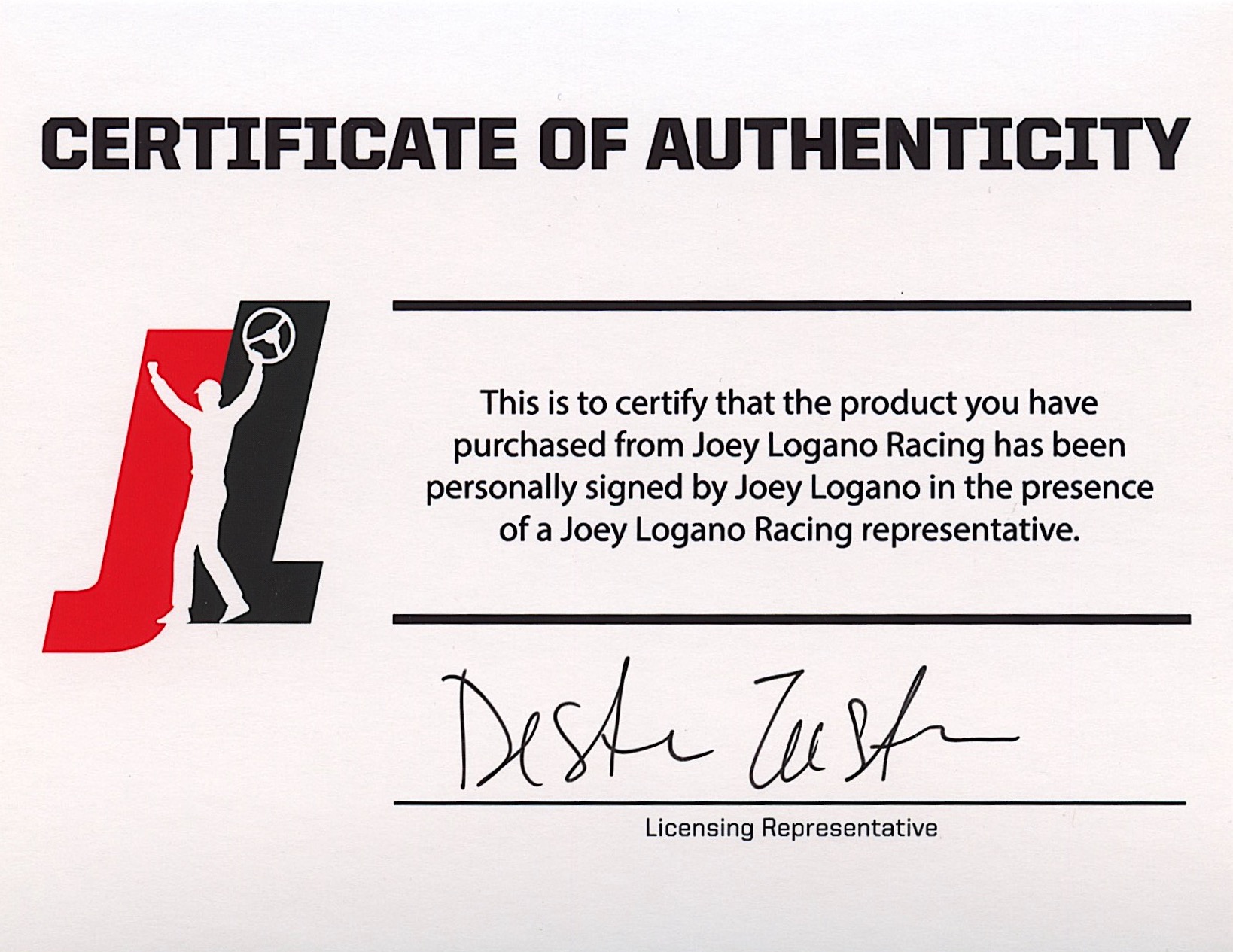 The autograph includes an official Pristine Authentic tamper proof hologram and matching COA for authenticity purposes. Also includes an official COA from Joey Logano.