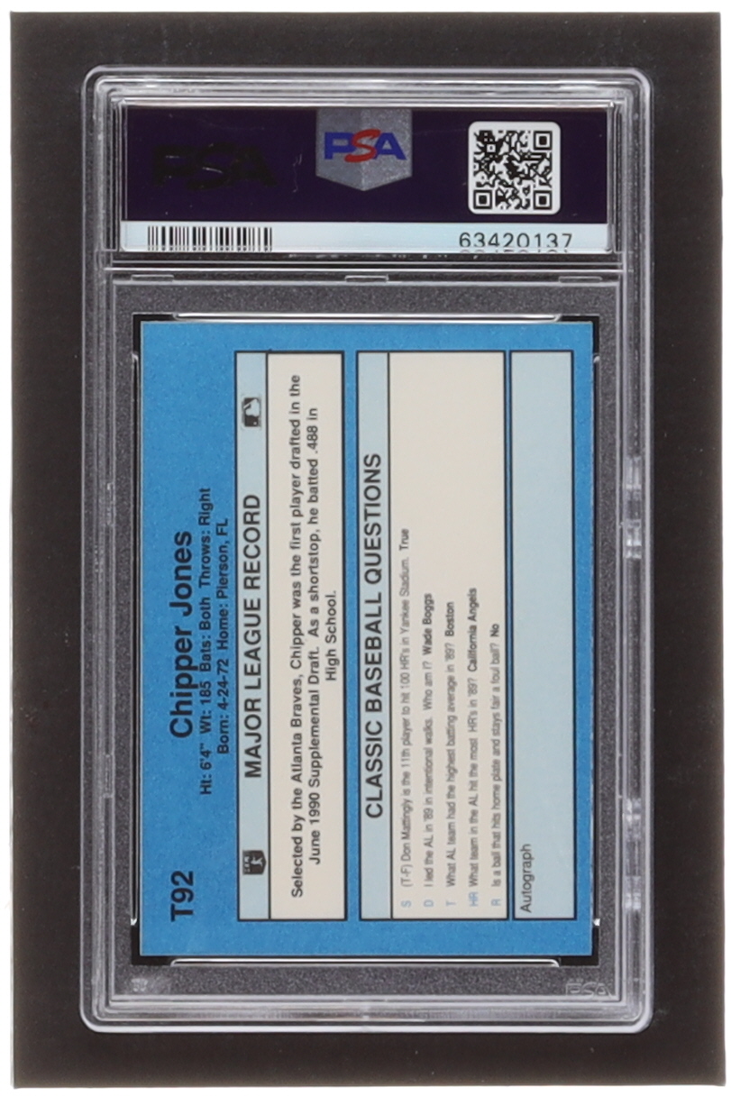Chipper Jones 1990 Classic Yellow #T92 RC (PSA 10)