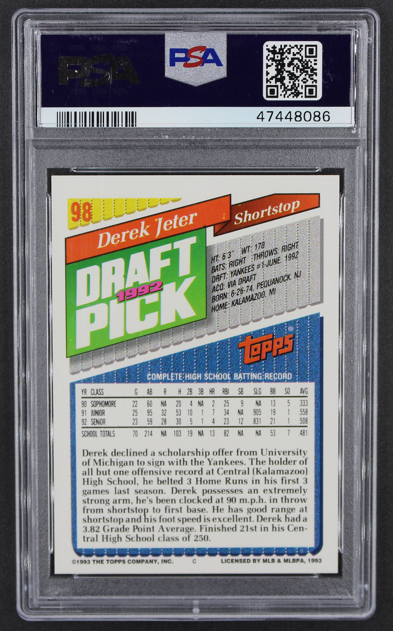Derek Jeter 1993 Topps #98 RC (PSA 8)