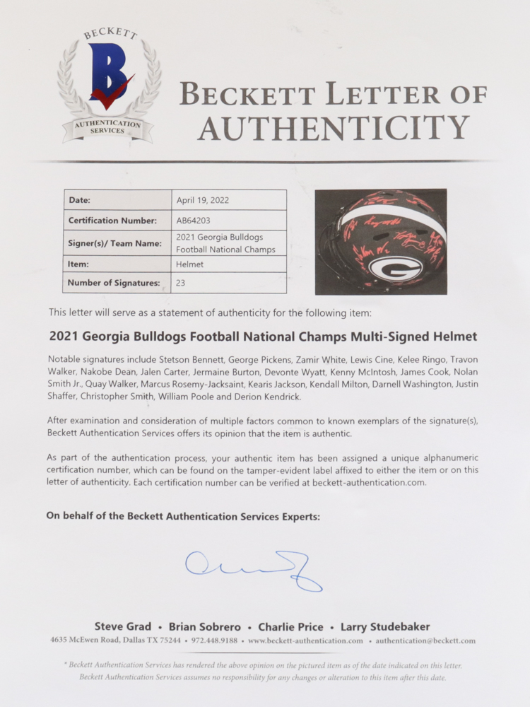 Georgia Bulldogs 2021 National Champions Full-Size Speed Helmet Signed by (23) with Stetson Bennett, George Pickens, Zamir White, Lewis Cine, Kelee Ringo (Beckett)