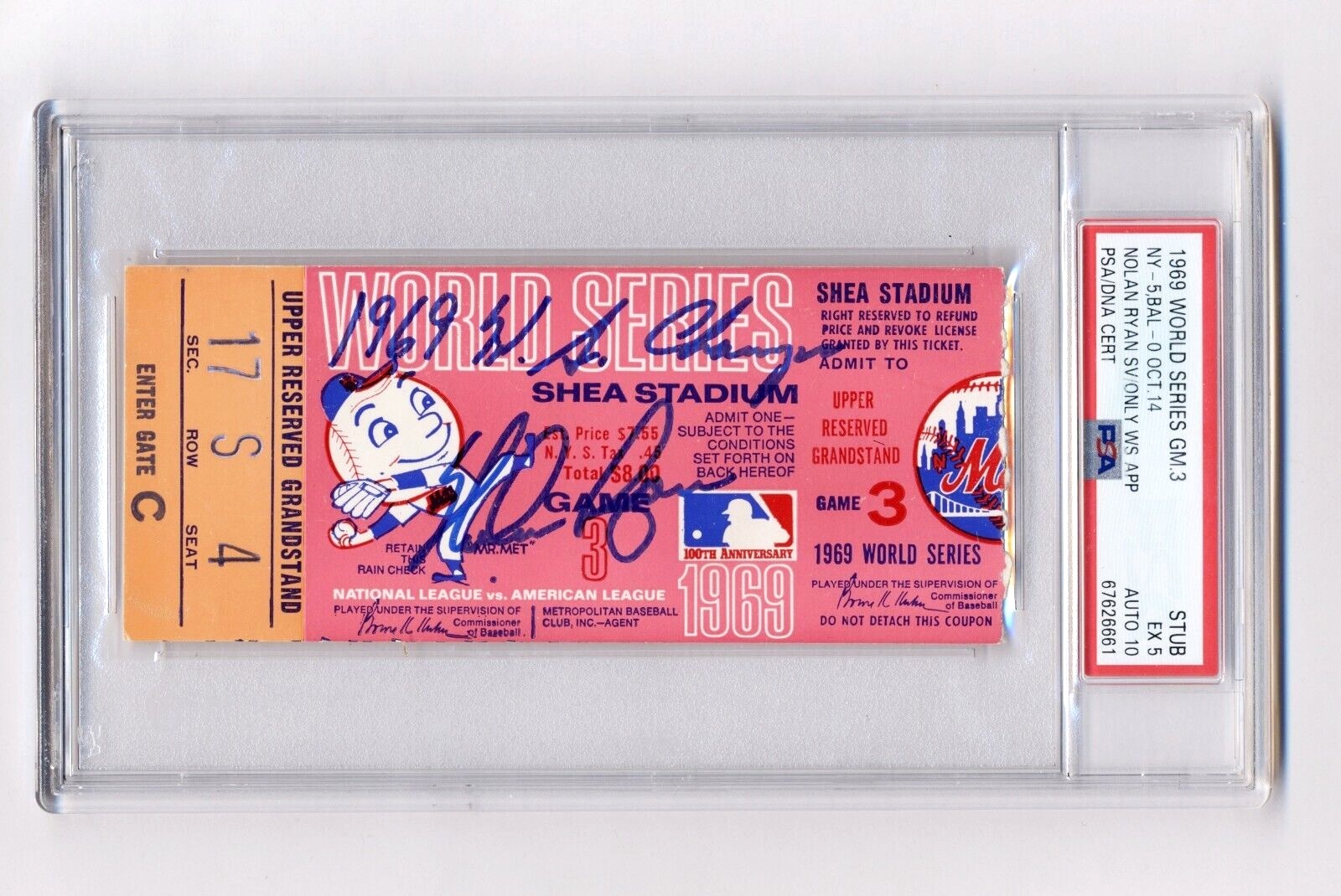 Nolan Ryan Signed 1969 World Series Game 3 Ticket Stub Inscribed "1969 W.S. Champs" (PSA 5)