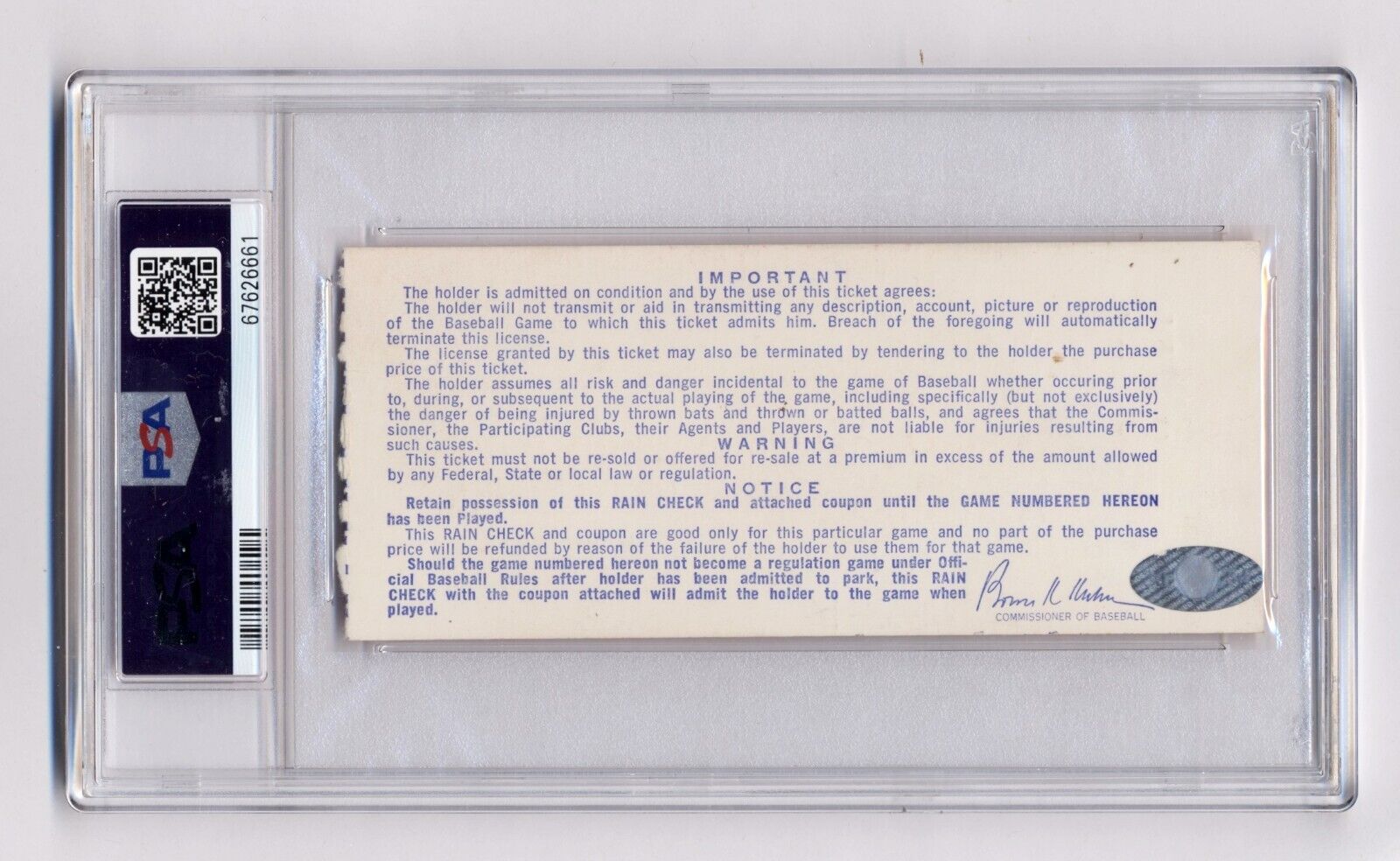 Ticket stub has been graded PSA 5. Hand-signed and inscribed by Nolan Ryan (Houston Astros, HOF).