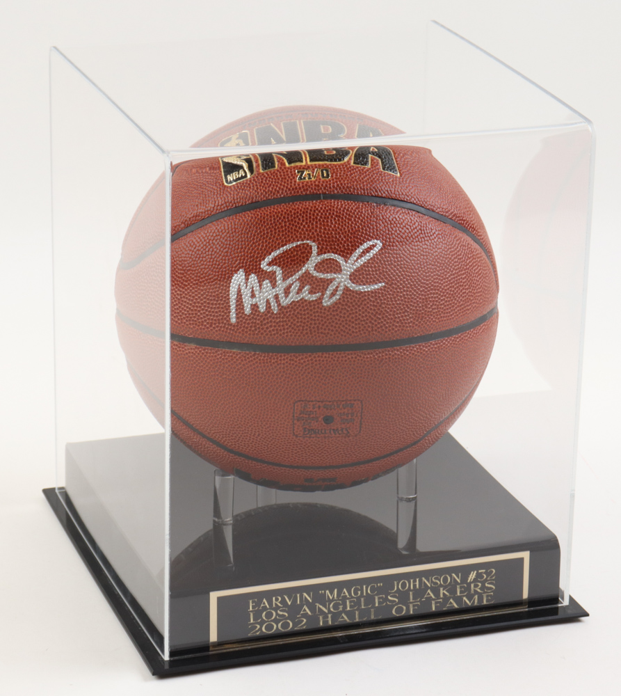 Magic Johnson Signed NBA Basketball with Display Case (Steiner)