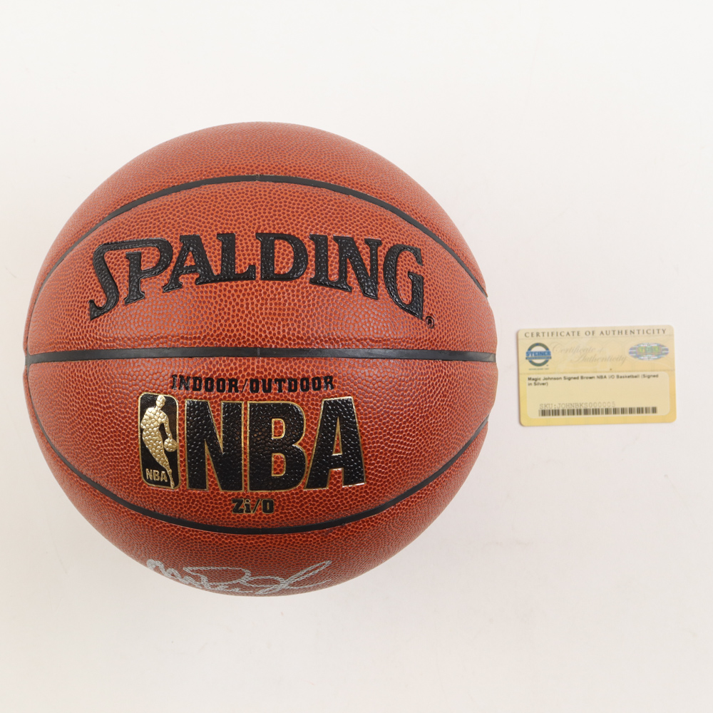 Spalding Indoor/Outdoor NBA Zi/O basketball. Hand-signed by Magic Johnson (Los Angeles Lakers, HOF). The display case is included as shown.