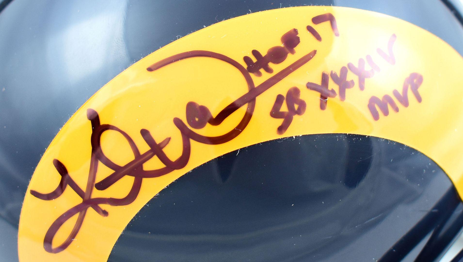Riddell St. Louis Rams throwback speed mini helmet hand signed and inscribed by Kurt Warner (HOF).