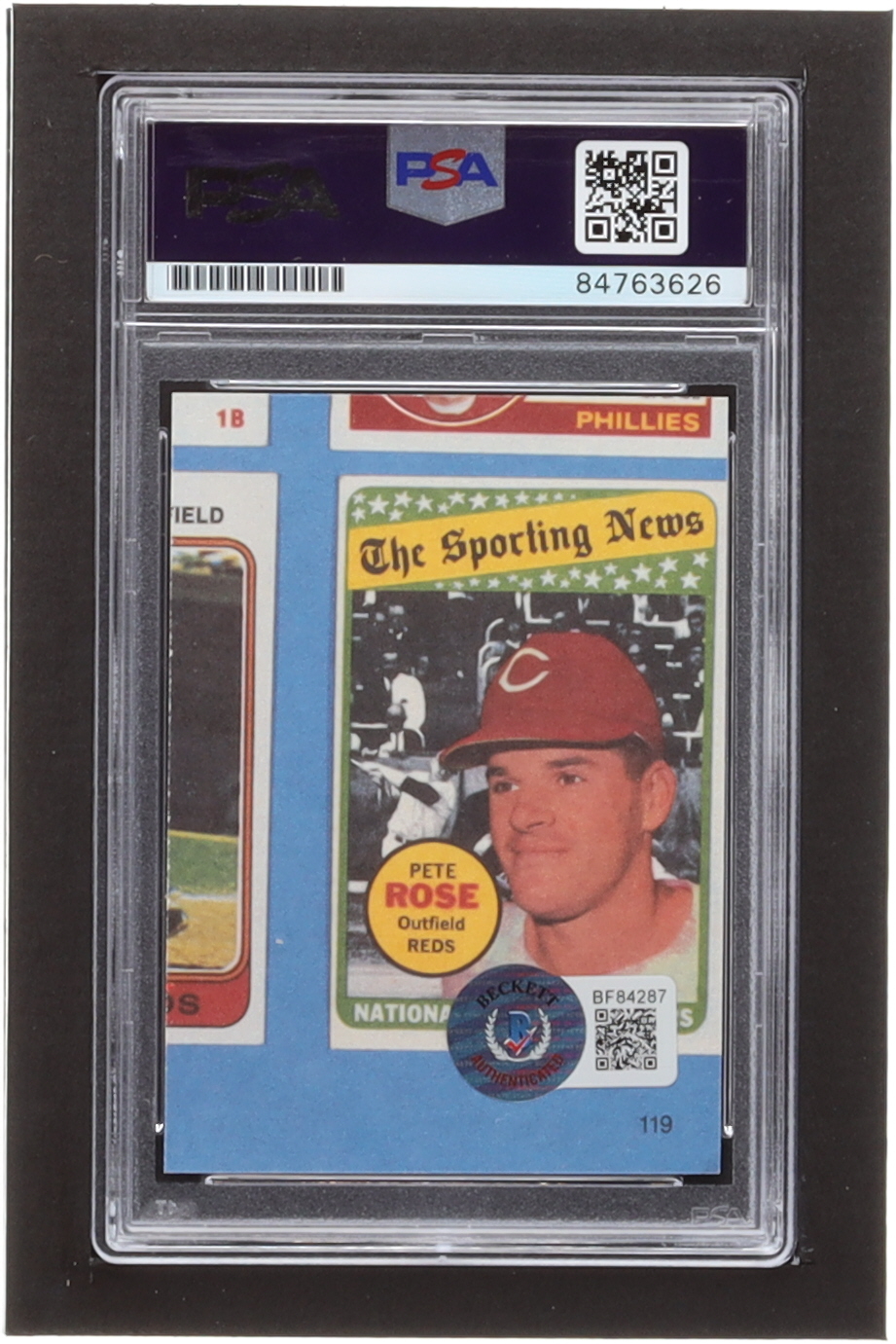 Pete Rose Signed 1985 Topps Rose #119 / On One Knee (PSA & Beckett)