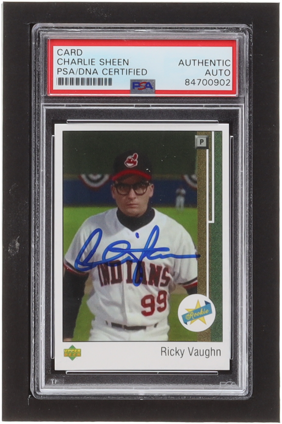 Card has been hand-signed by Charlie Sheen (Ricky "Wild Thing" Vaughn). Please see photos for details regarding the condition of the card.