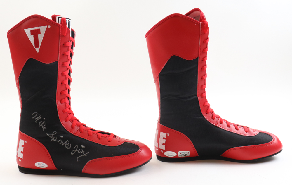 Mike Tyson & Leon Spinks Signed Pair Of Title Boxing Boots Inscribed "Jinx" (PSA, JSA & Tyson)