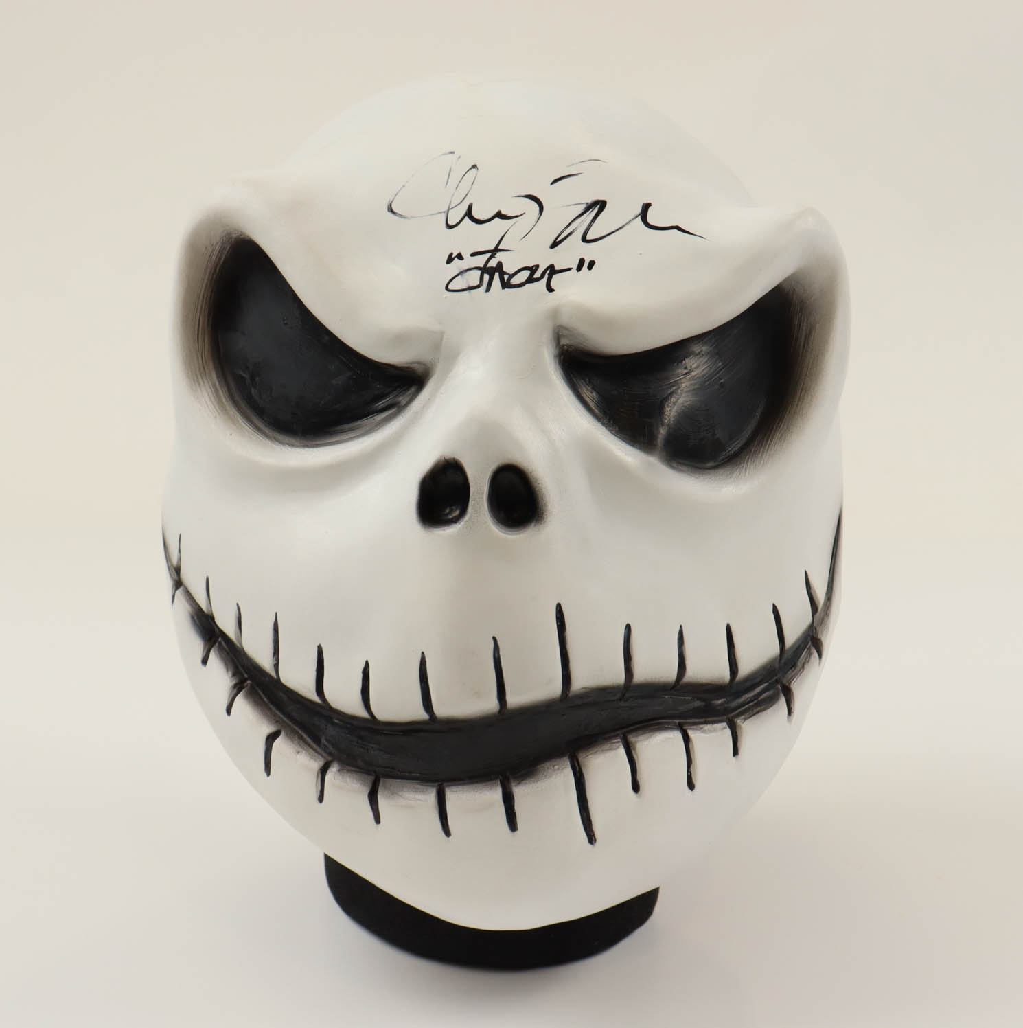 Full-size latex mask is hand-signed and inscribed by Chris Sarandon (Voice of Jack Skellington).