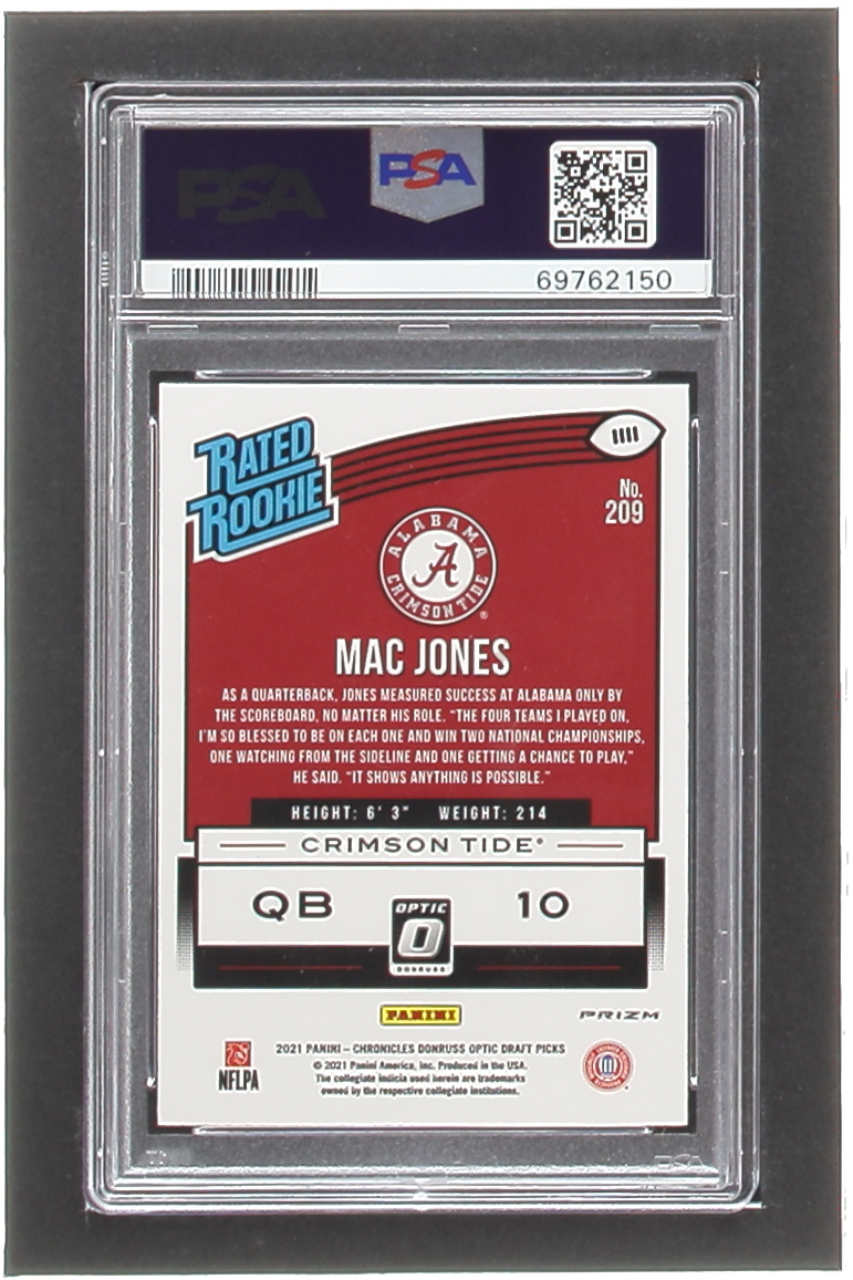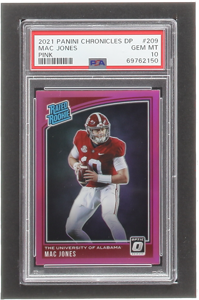 Mac Jones 2021 Panini Chronicles Draft Picks Donruss Optic Rated Rookies Pink #209 RC (PSA 10)
