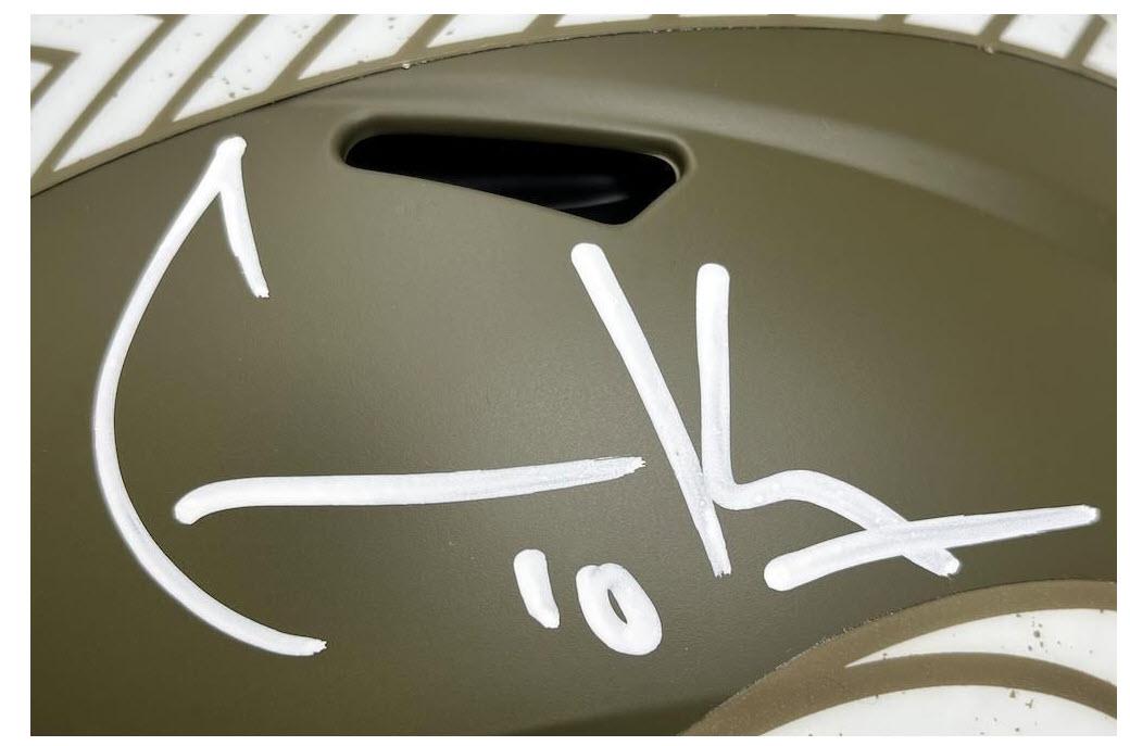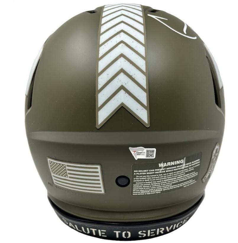 Riddell Los Angeles Rams full size authentic on-field Salute to Service speed helmet. Hand signed by Cooper Kupp. Helmet aslo includes a custom visor.